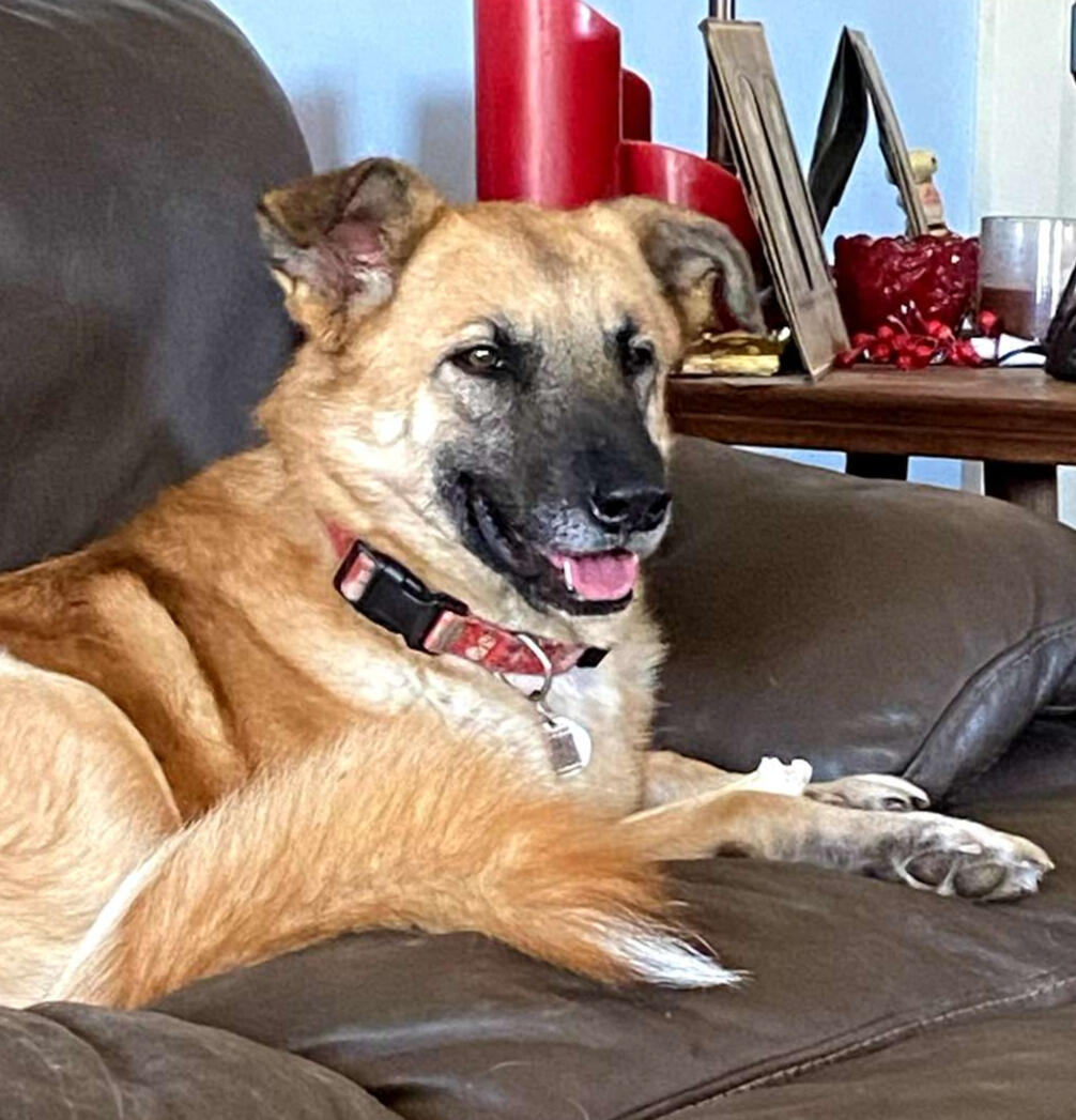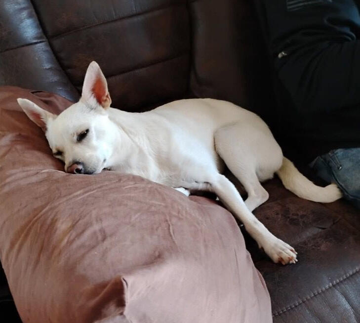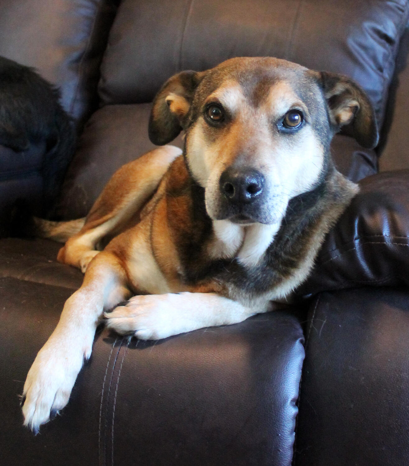 Myah is a fairly reserved middle aged girl who'd love a couch to nap on most of the day. She's happy to join you outside, so long as you're up for lazing around immediately afterwards. Myah is good with kids, cats and a few other dogs, but there should be no livestock at her forever home. She's familliar with a doggy door, and is fully housetrained, but doesn't like to share a bed with other dogs. She'd prefer her own space for bed time.. unless she's the only dog crawling in bed with YOU!