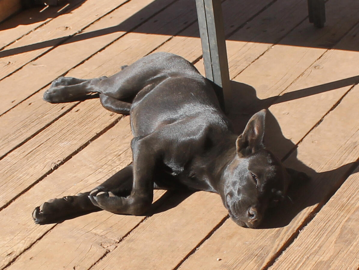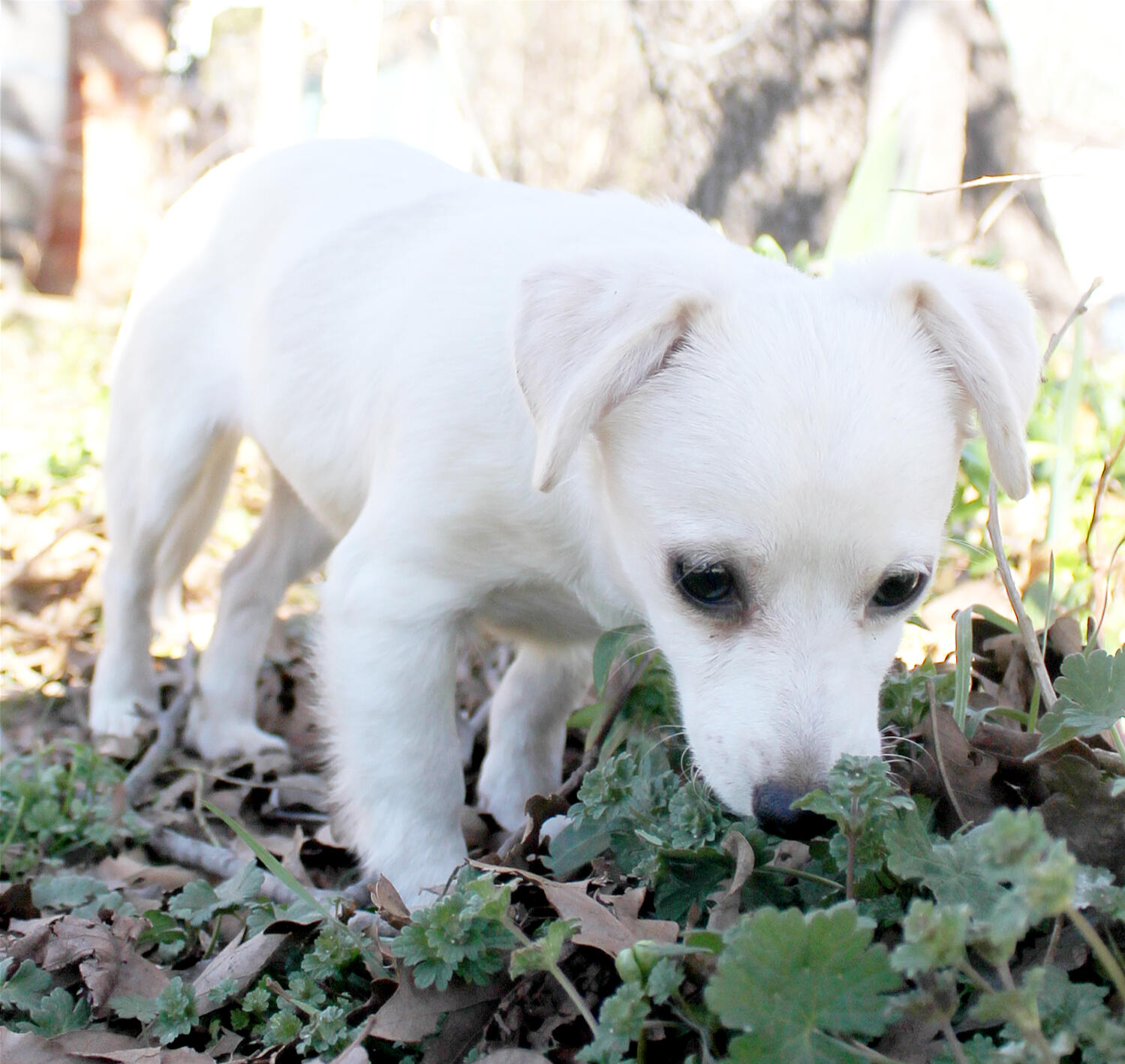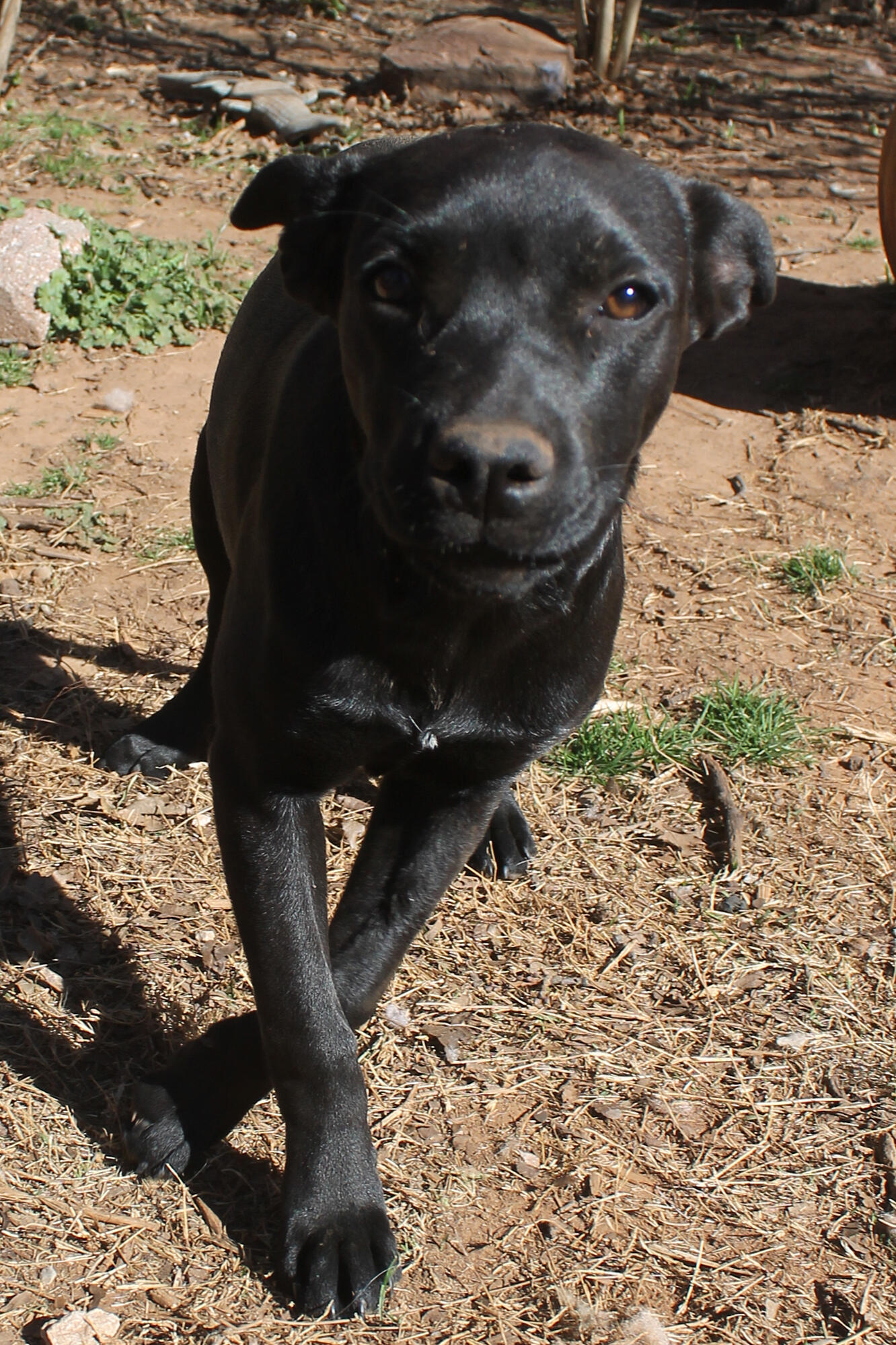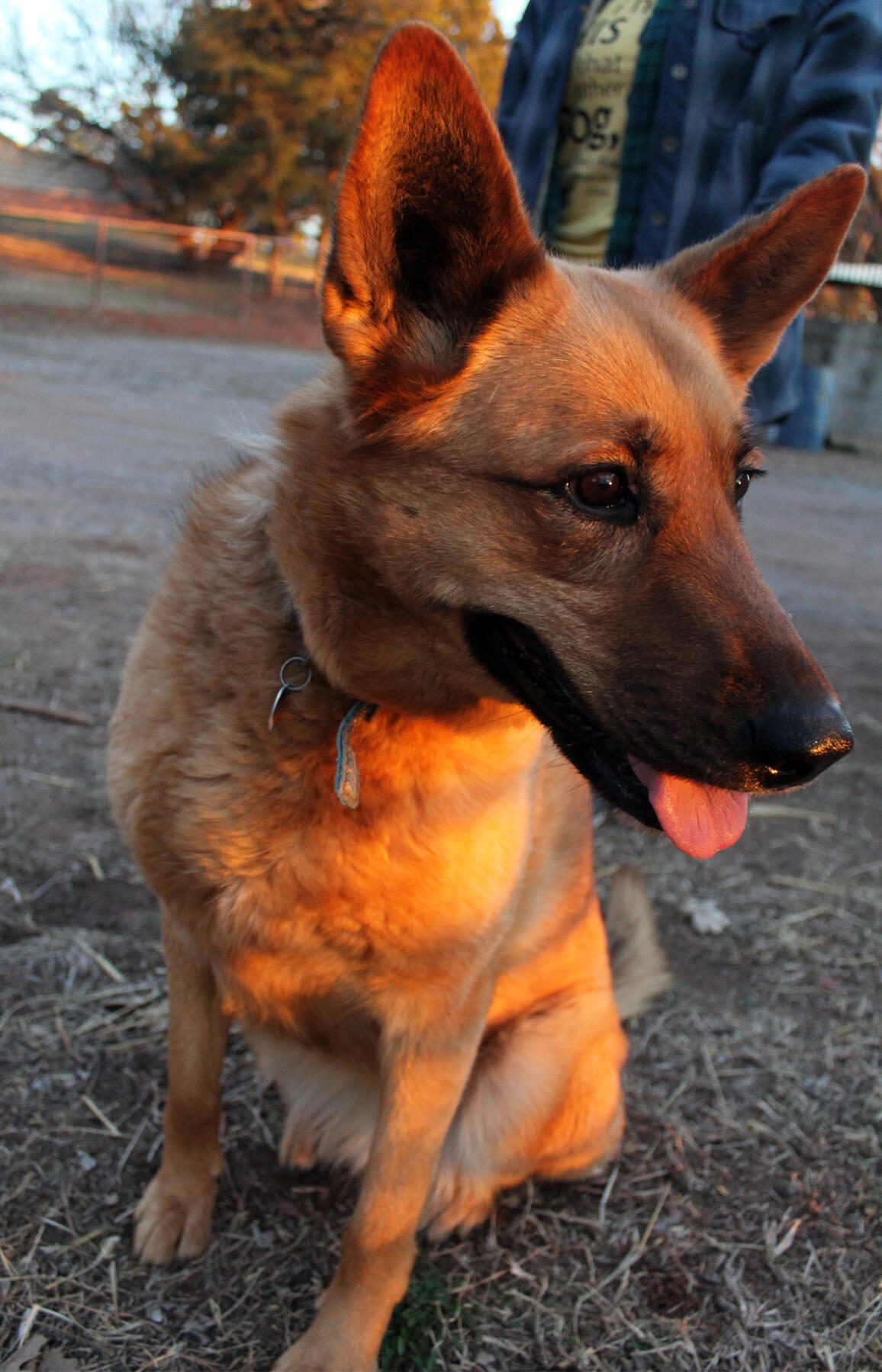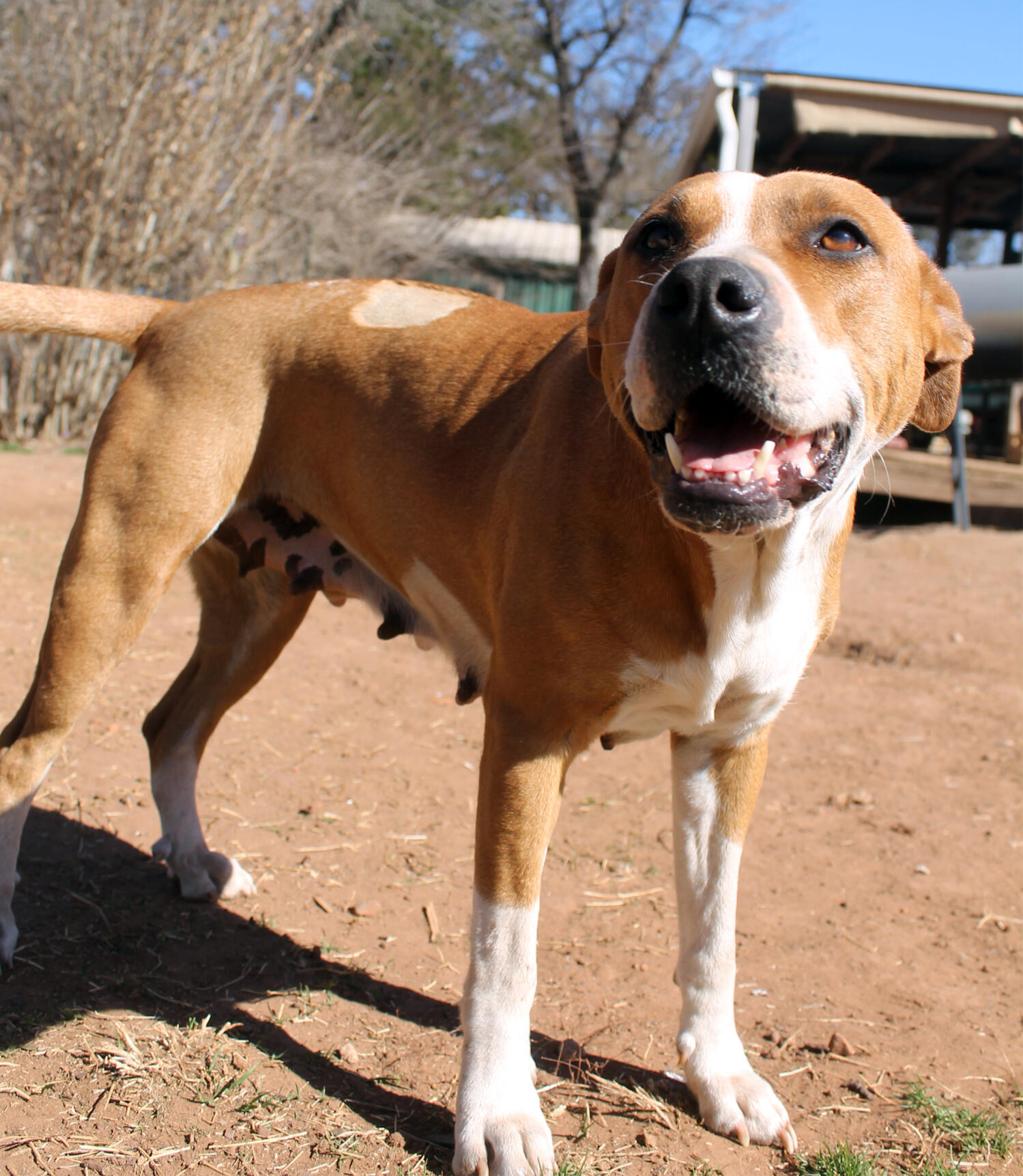 Toto came to the rescue after her puppies were taken from her much too early, and sold on craigs list. Toto was distrustful at first, but has learned that humans bring nice food, and some gentle head pats.While she is still shy, and a little growly at first, Toto is very sweet once she trusts her humans. Other dogs and cats are A-OK, but kids aren't a good much for her at this time.
