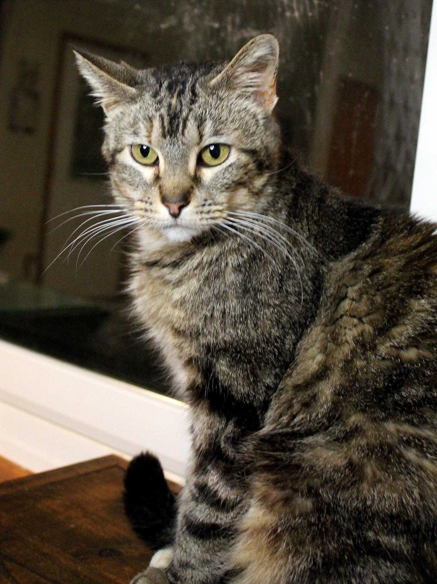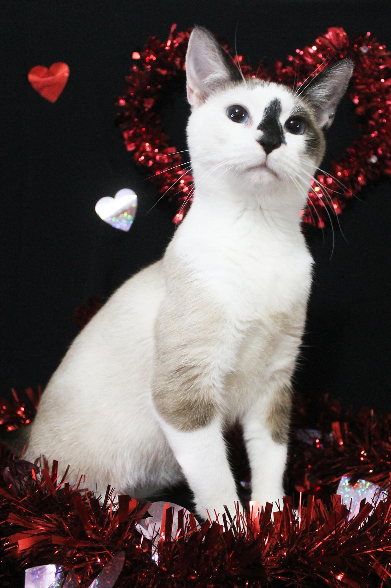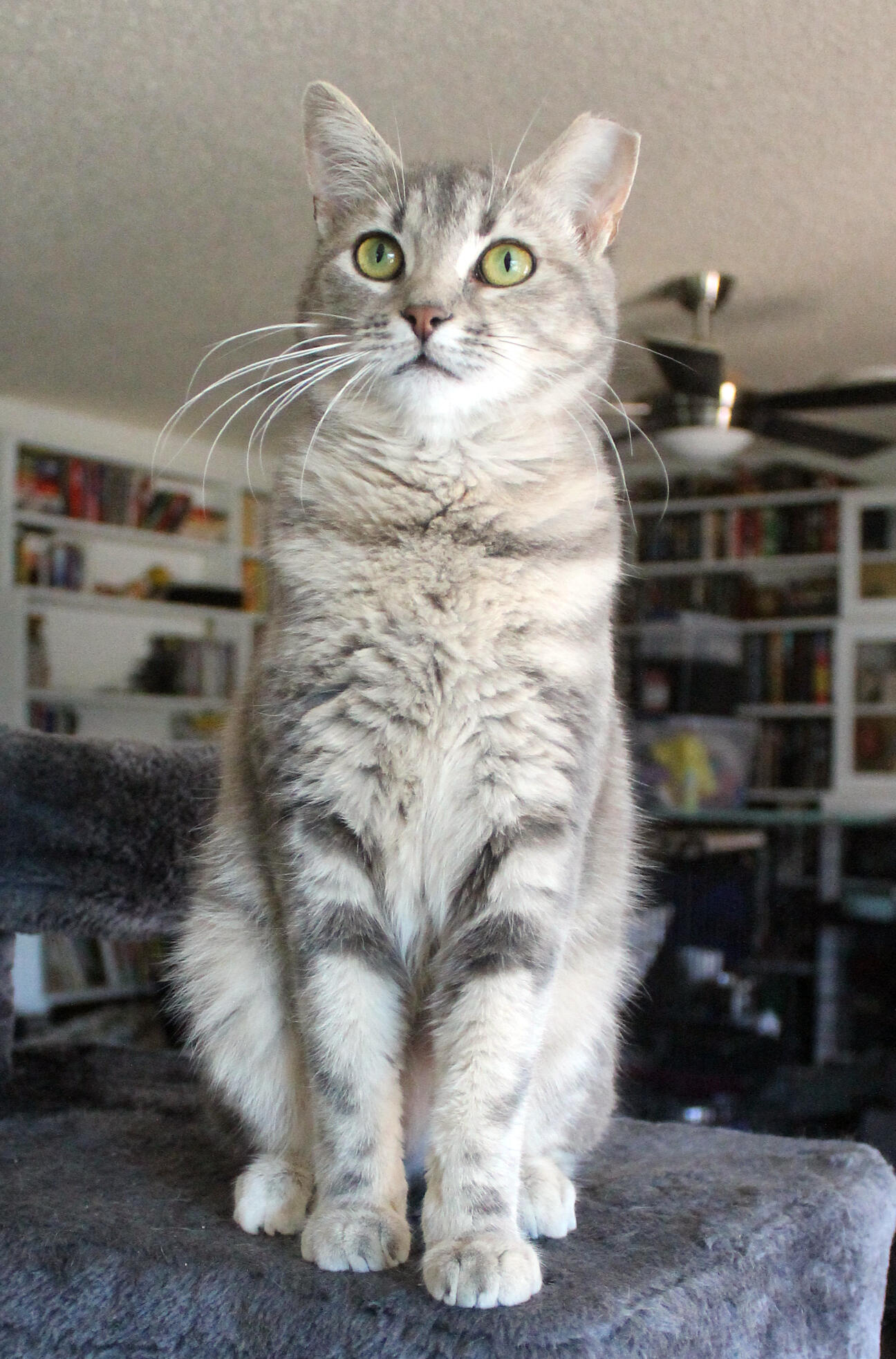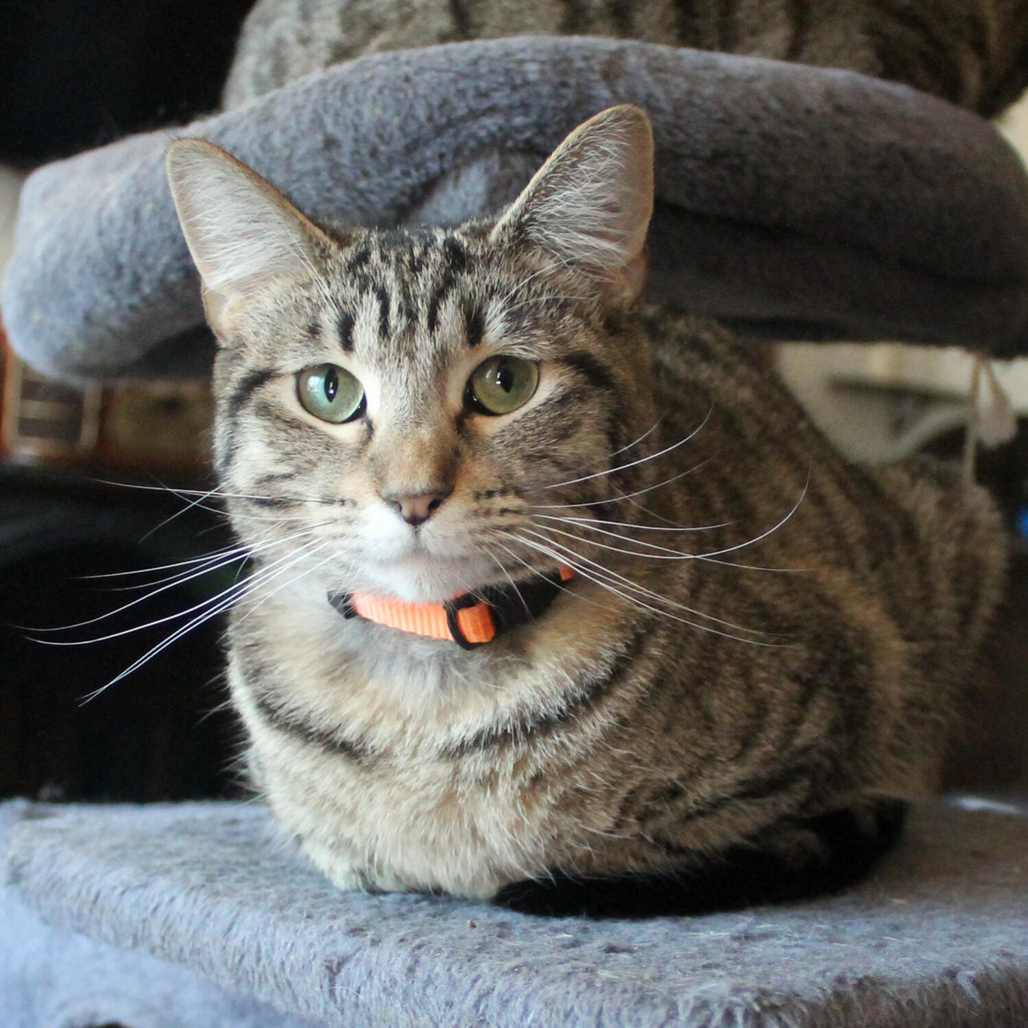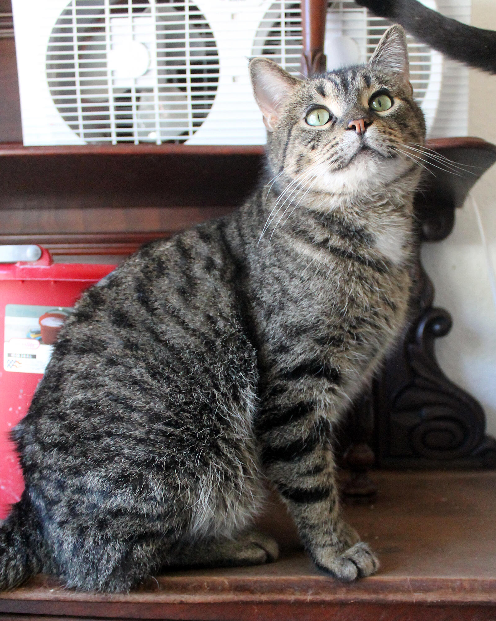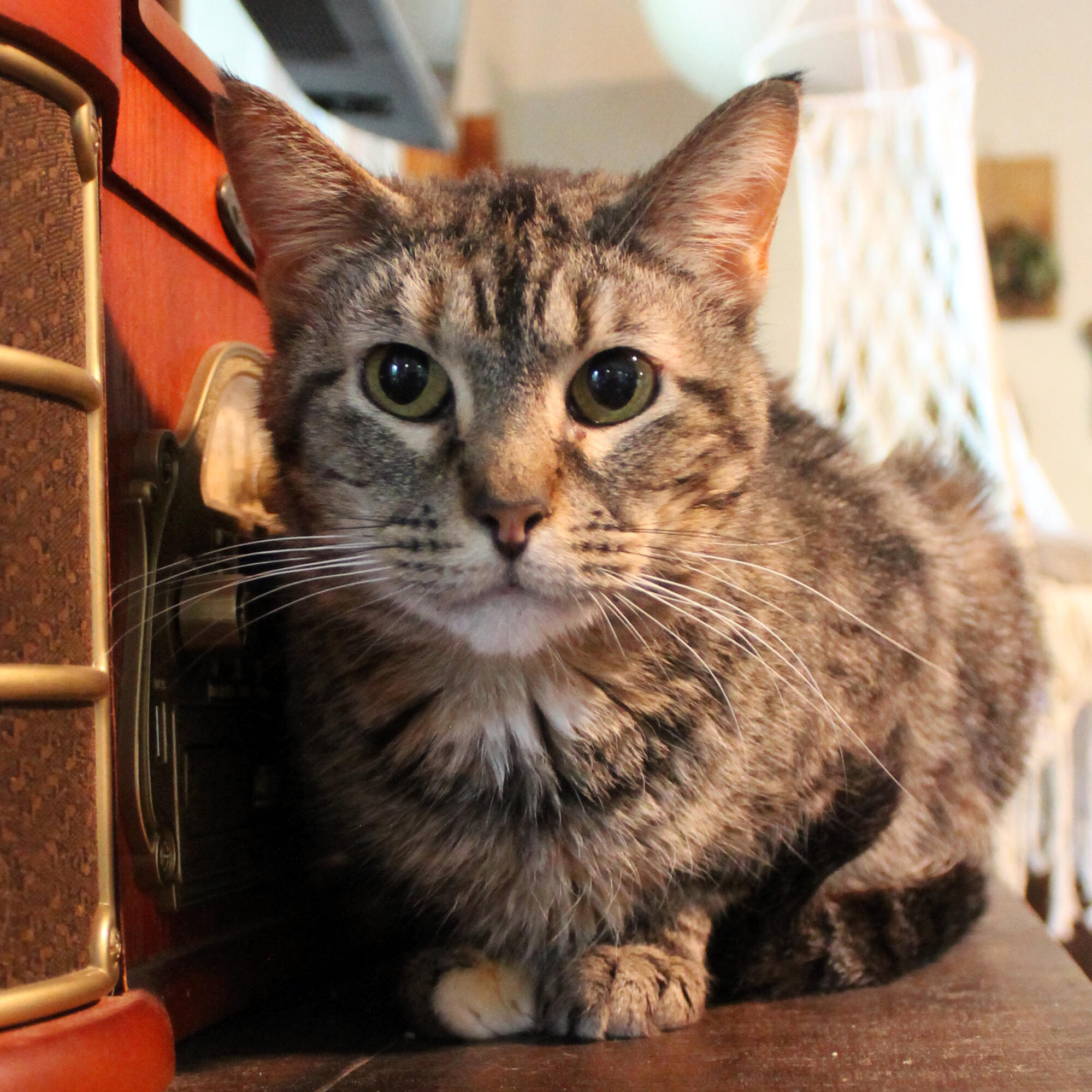 This sweet, easy going lady has eyes so crossed, one is pointed all the way in 😂 She might not be looking at you, but she IS paying attention! Googley Eyes is friendly, affectionate, and very gentle. She loves to cuddle humans, and enjoys the company of other cats. She is also a very large cat, rather than a tiny dainty girl 😅 She will happily be carried around, if you can lift her!