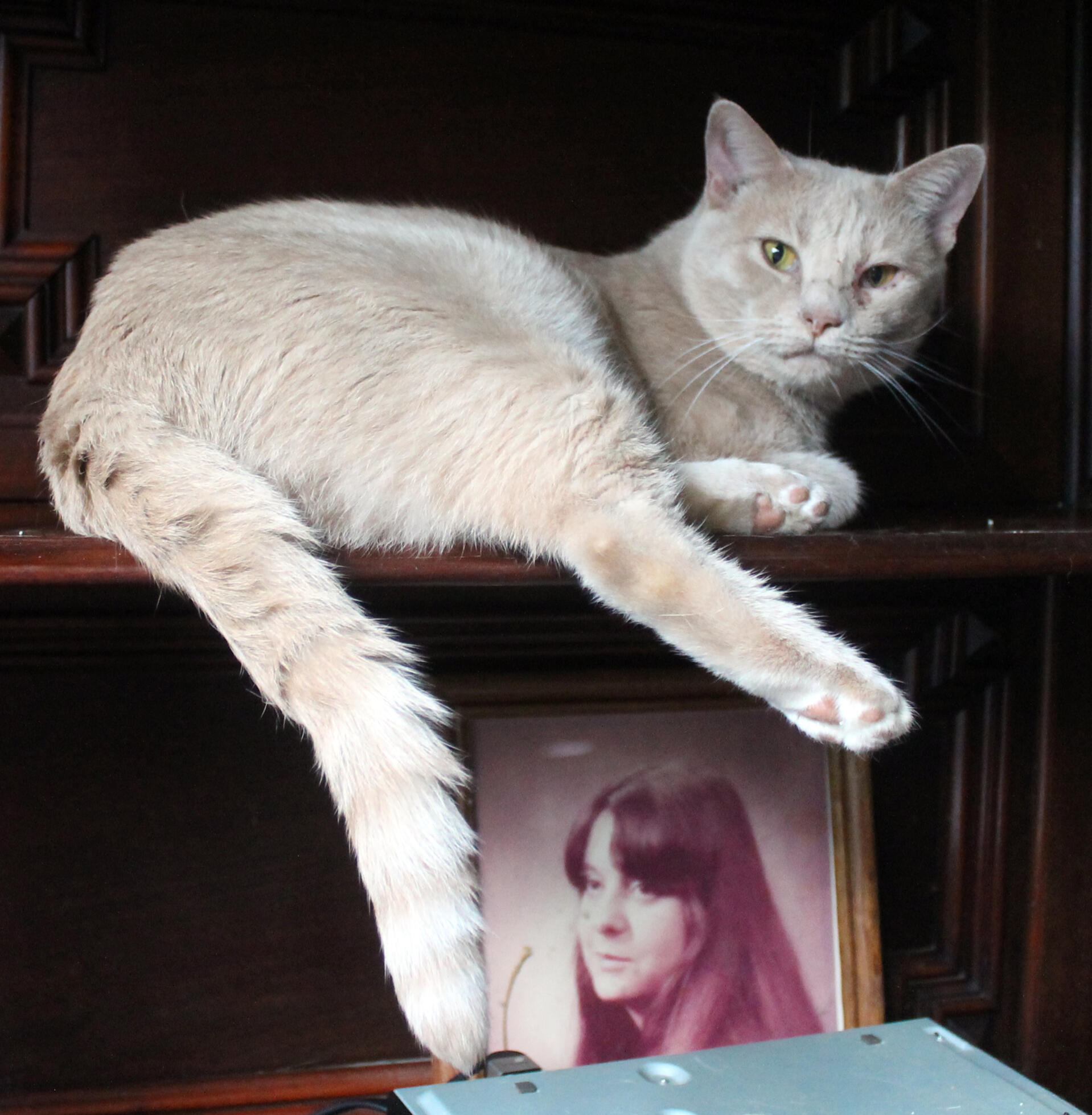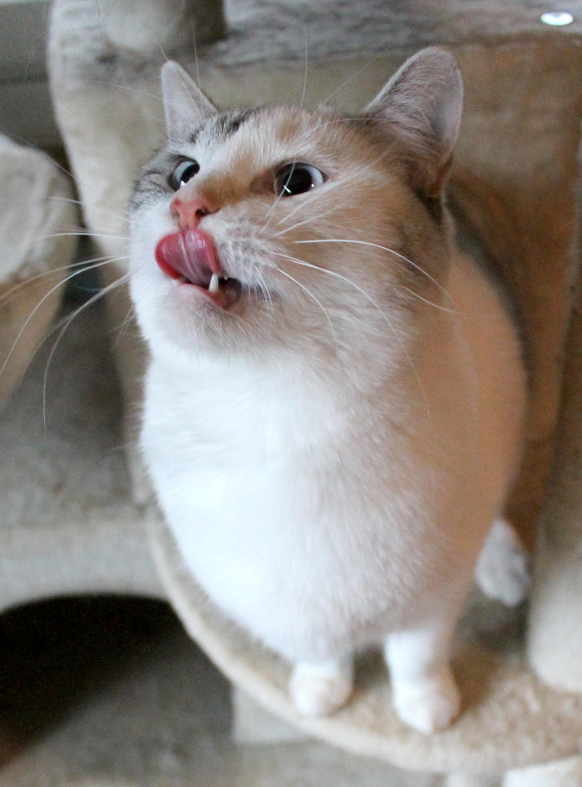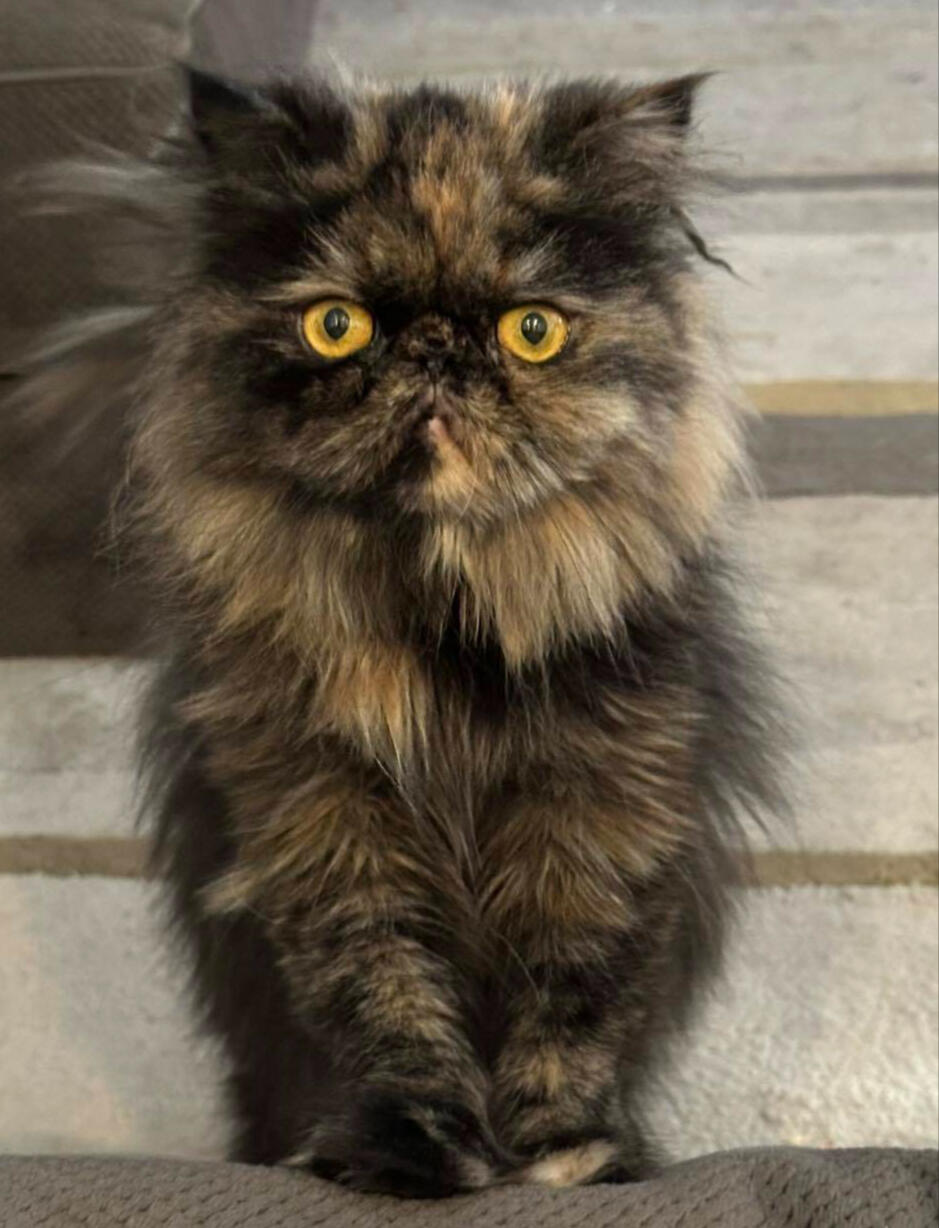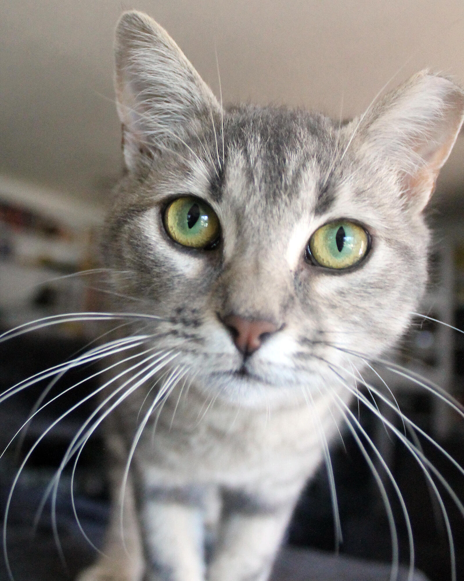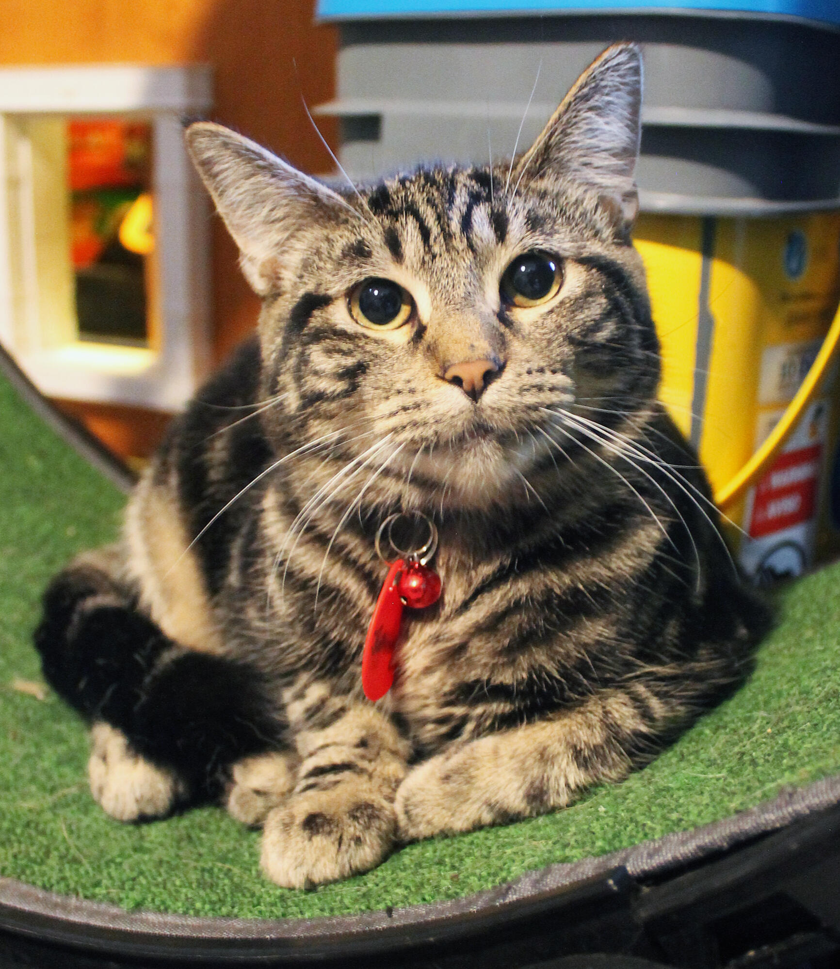 This sweet, easy going lady has eyes so crossed, one is pointed all the way in 😂 She might not be looking at you, but she IS paying attention! Googley Eyes is friendly, affectionate, and very gentle. She loves to cuddle humans, and enjoys the company of other cats. She is also a very large cat, rather than a tiny dainty girl 😅 She will happily be carried around, if you can lift her!