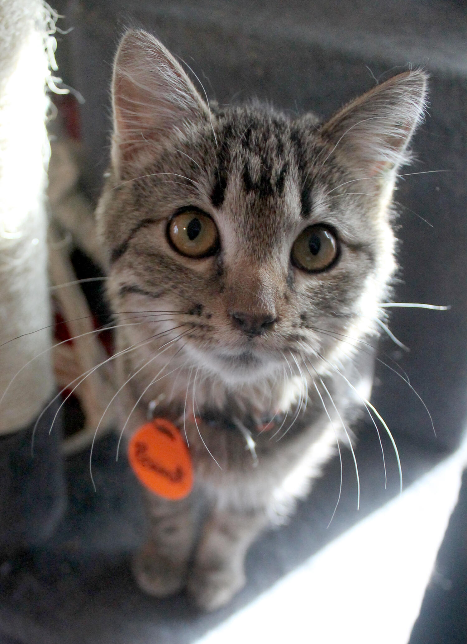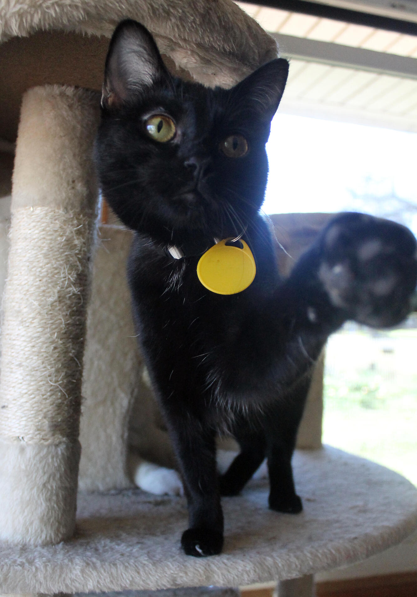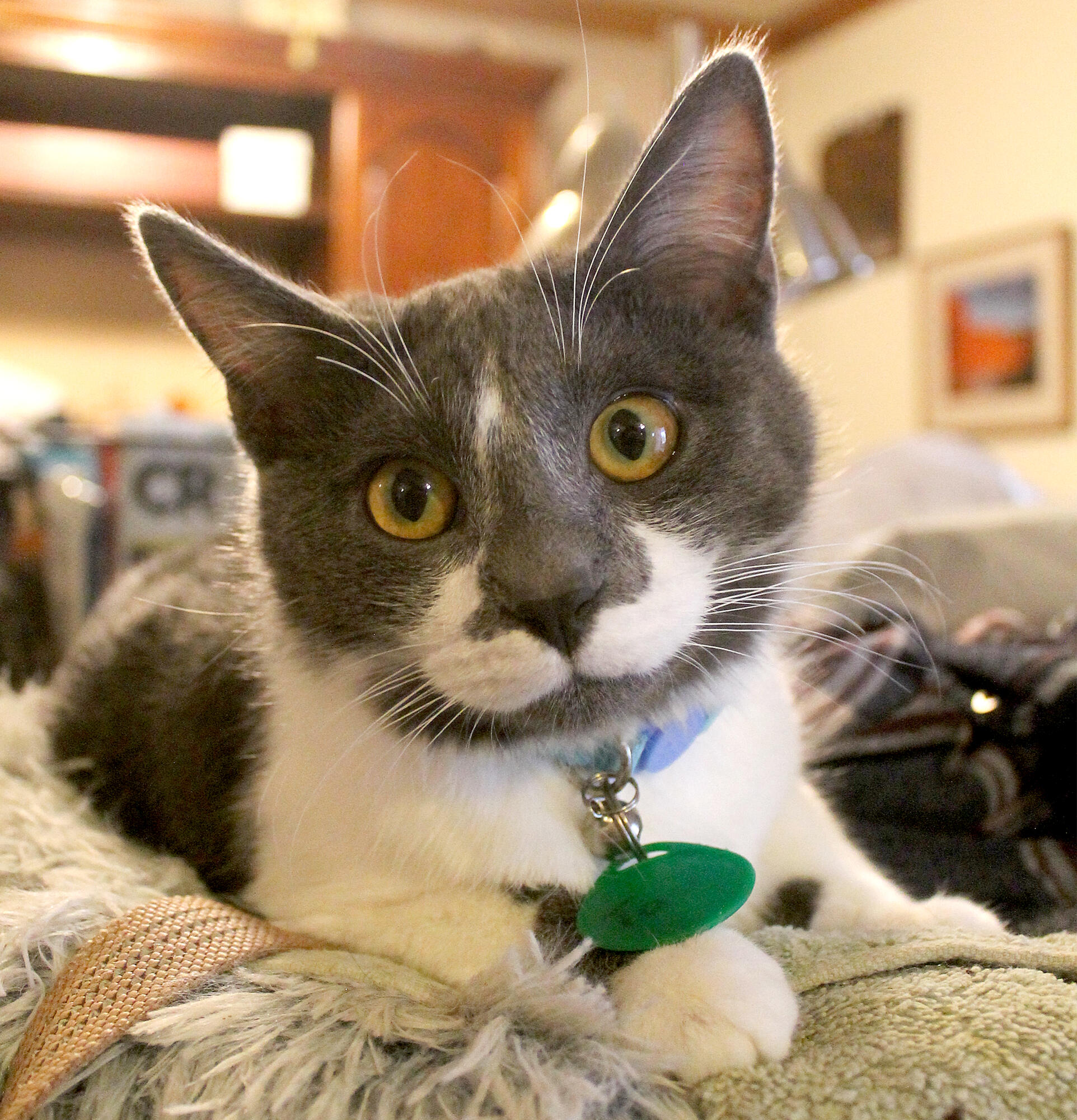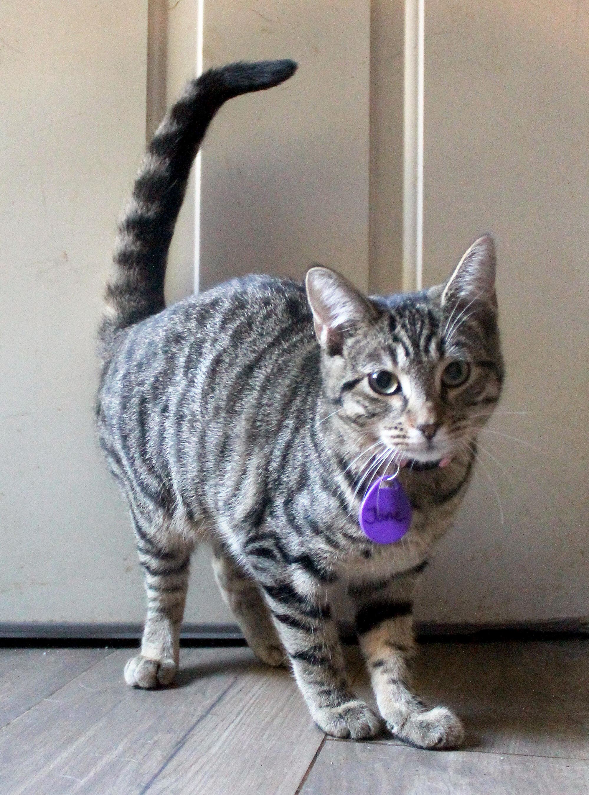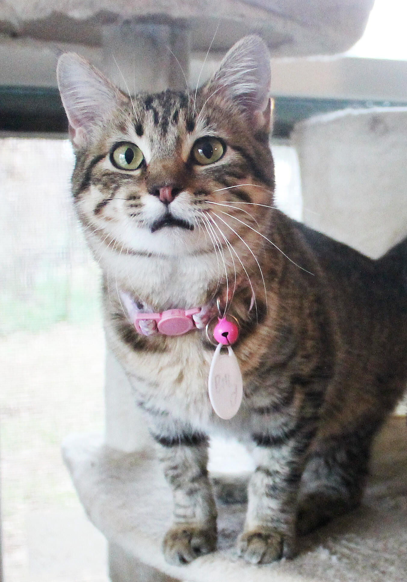 Penny is a friendly former feral kitty who has decided inside life is pretty ok so long as there's lots of toys. She is pretty outgoing, and quick to chase any string or ball you offer.Other cats and polie dogs are ok, and even kids are alright so long as they understand that Penny will set boundaries and expect them to be respected.