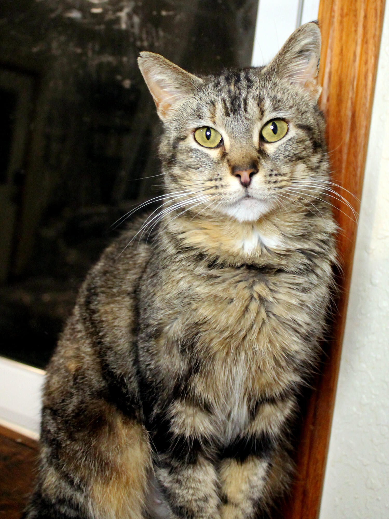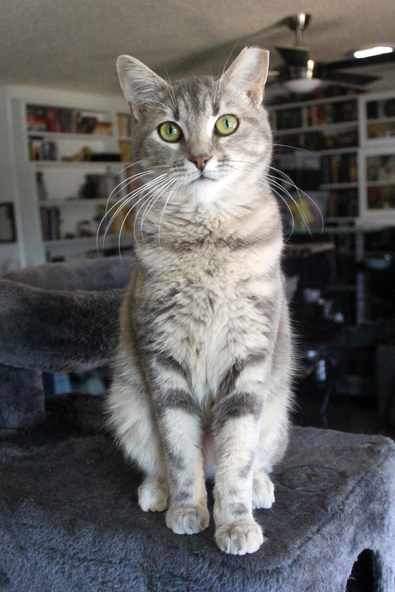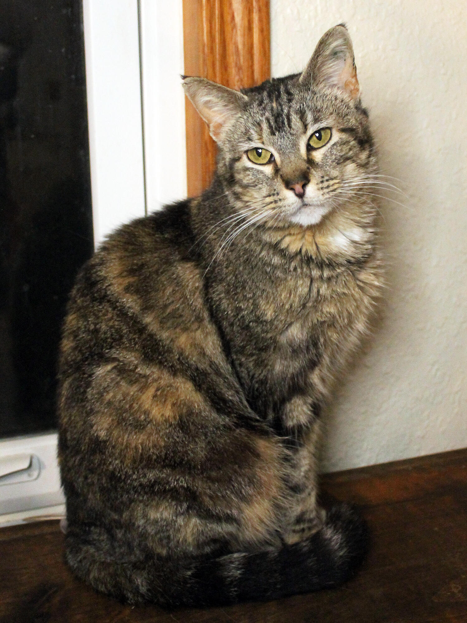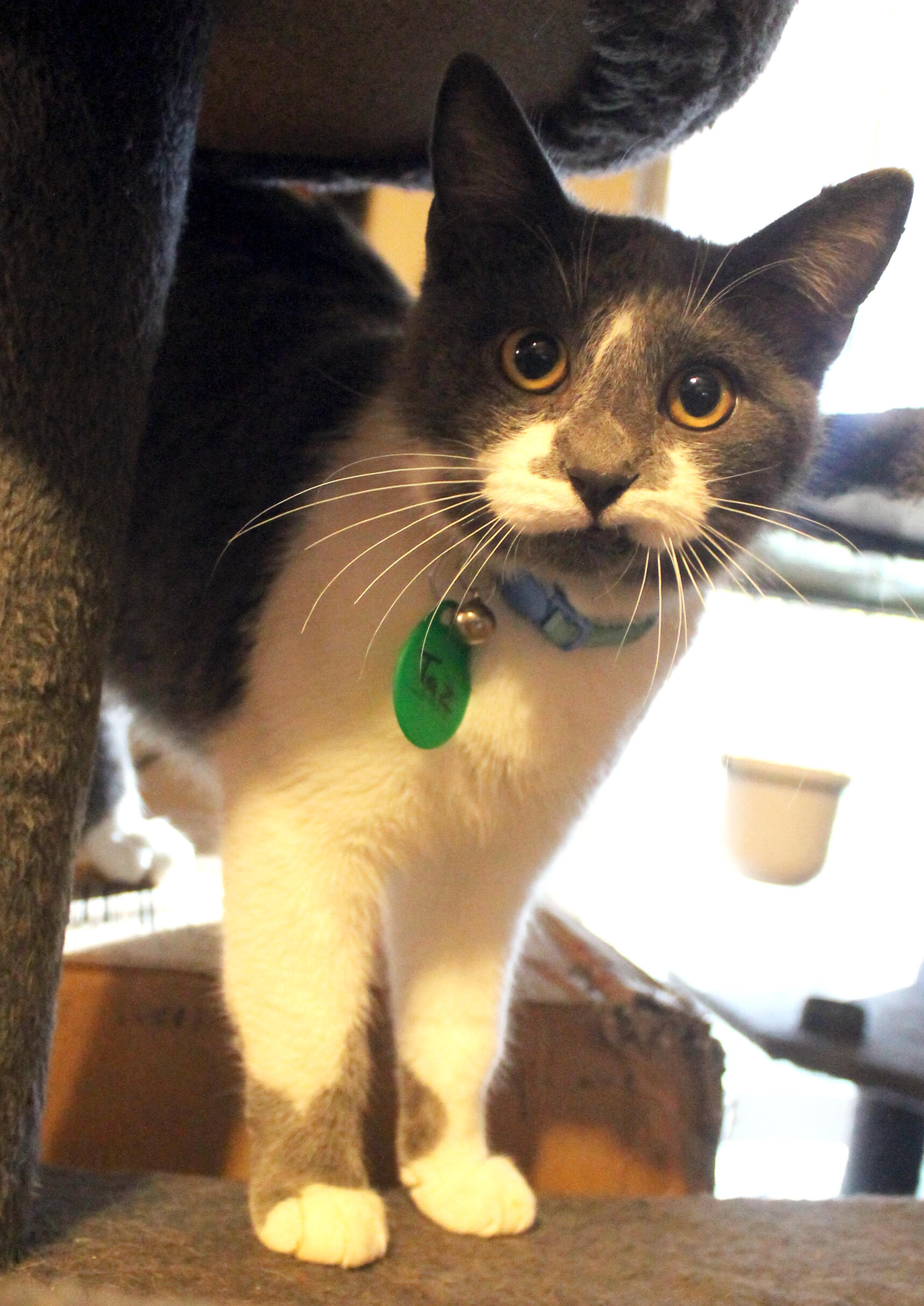 Penny is a friendly former feral kitty who has decided inside life is pretty ok so long as there's lots of toys. She is pretty outgoing, and quick to chase any string or ball you offer.Other cats and polie dogs are ok, and even kids are alright so long as they understand that Penny will set boundaries and expect them to be respected.