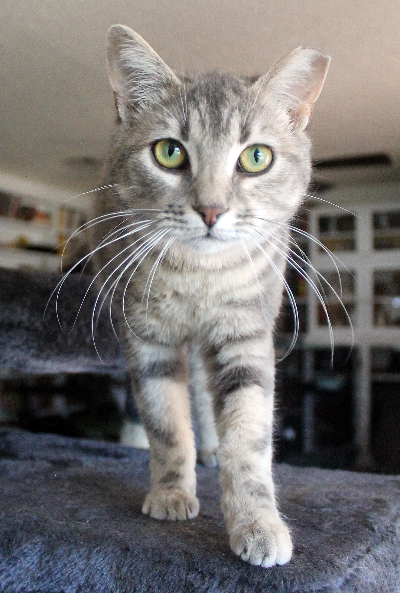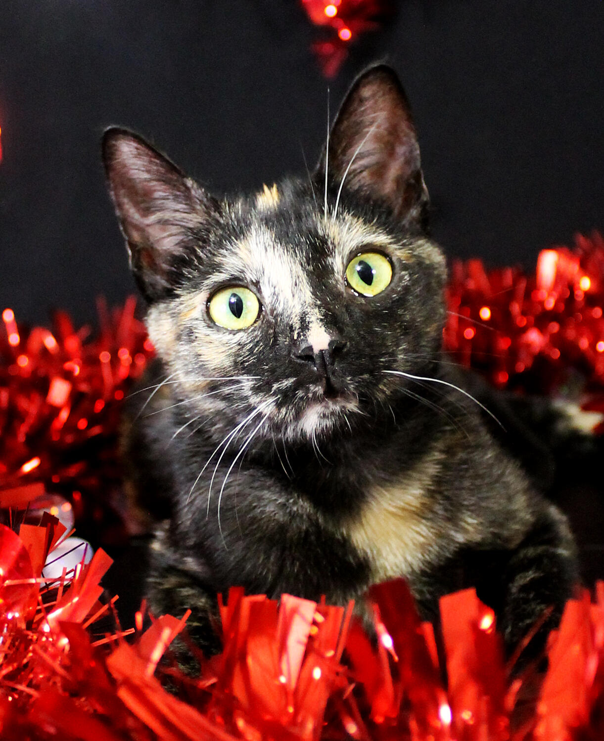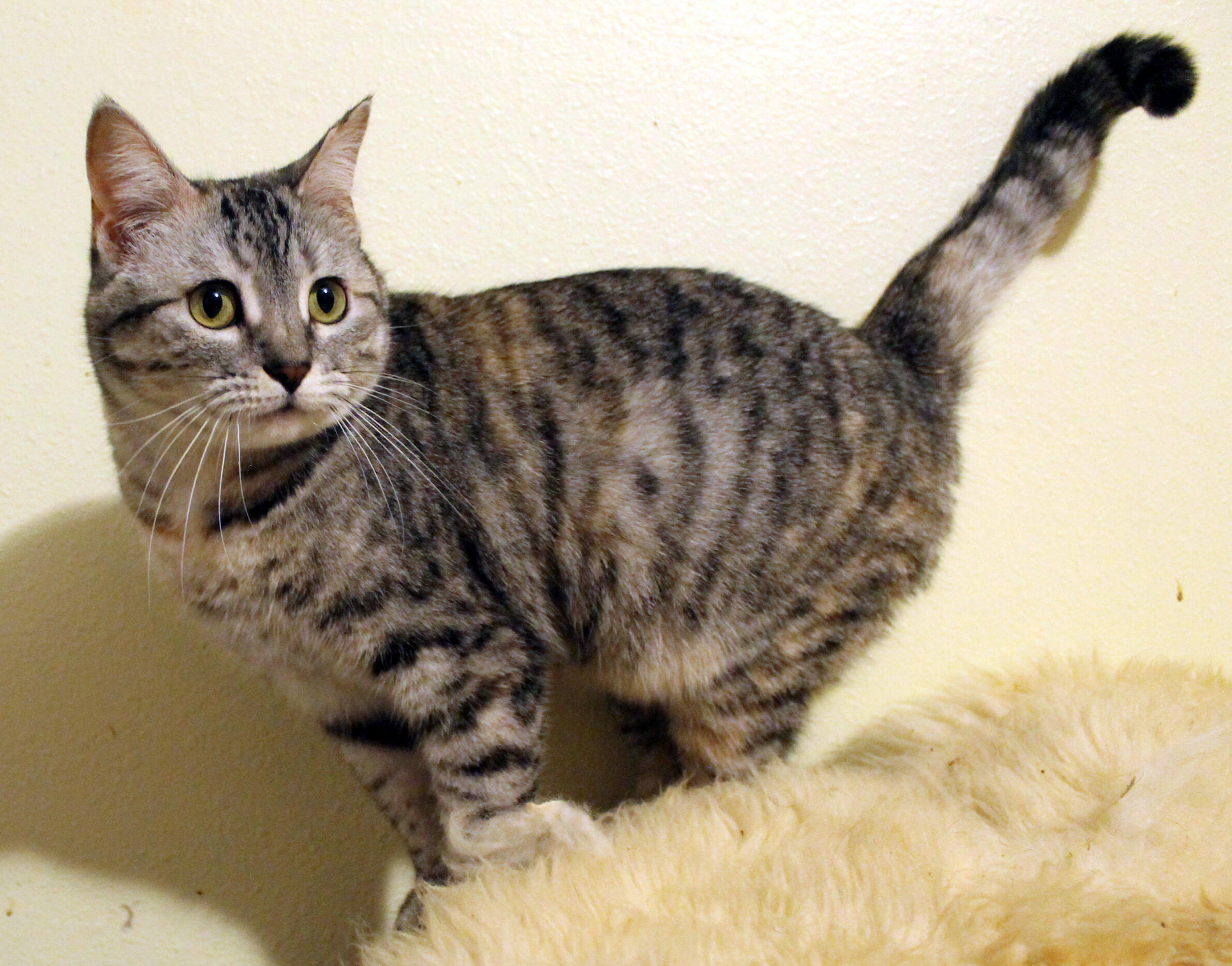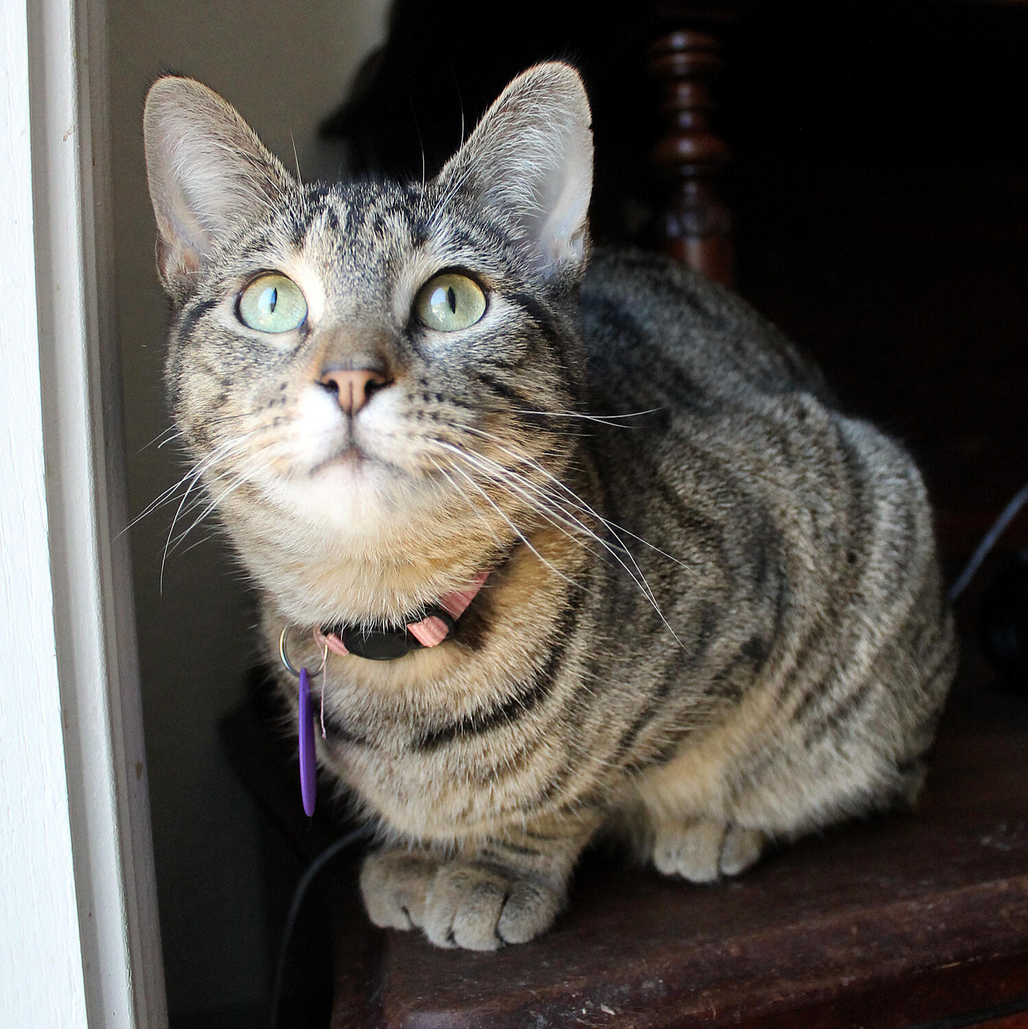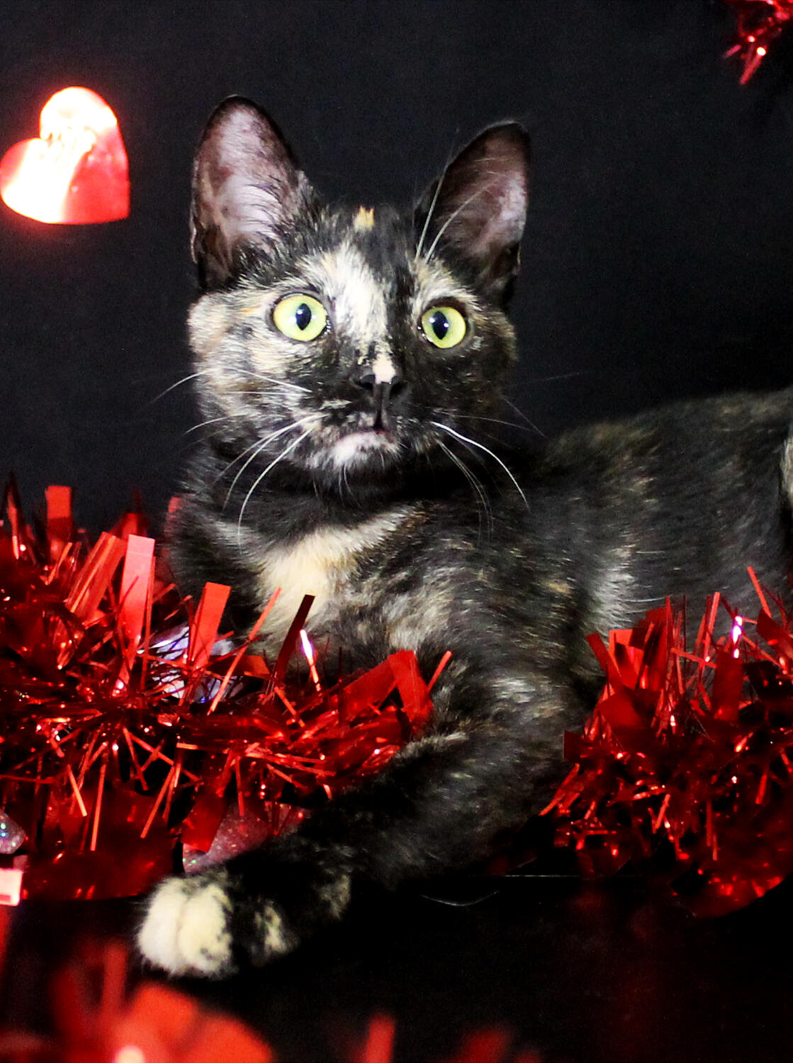 Penny is a friendly former feral kitty who has decided inside life is pretty ok so long as there's lots of toys. She is pretty outgoing, and quick to chase any string or ball you offer.Other cats and polie dogs are ok, and even kids are alright so long as they understand that Penny will set boundaries and expect them to be respected.