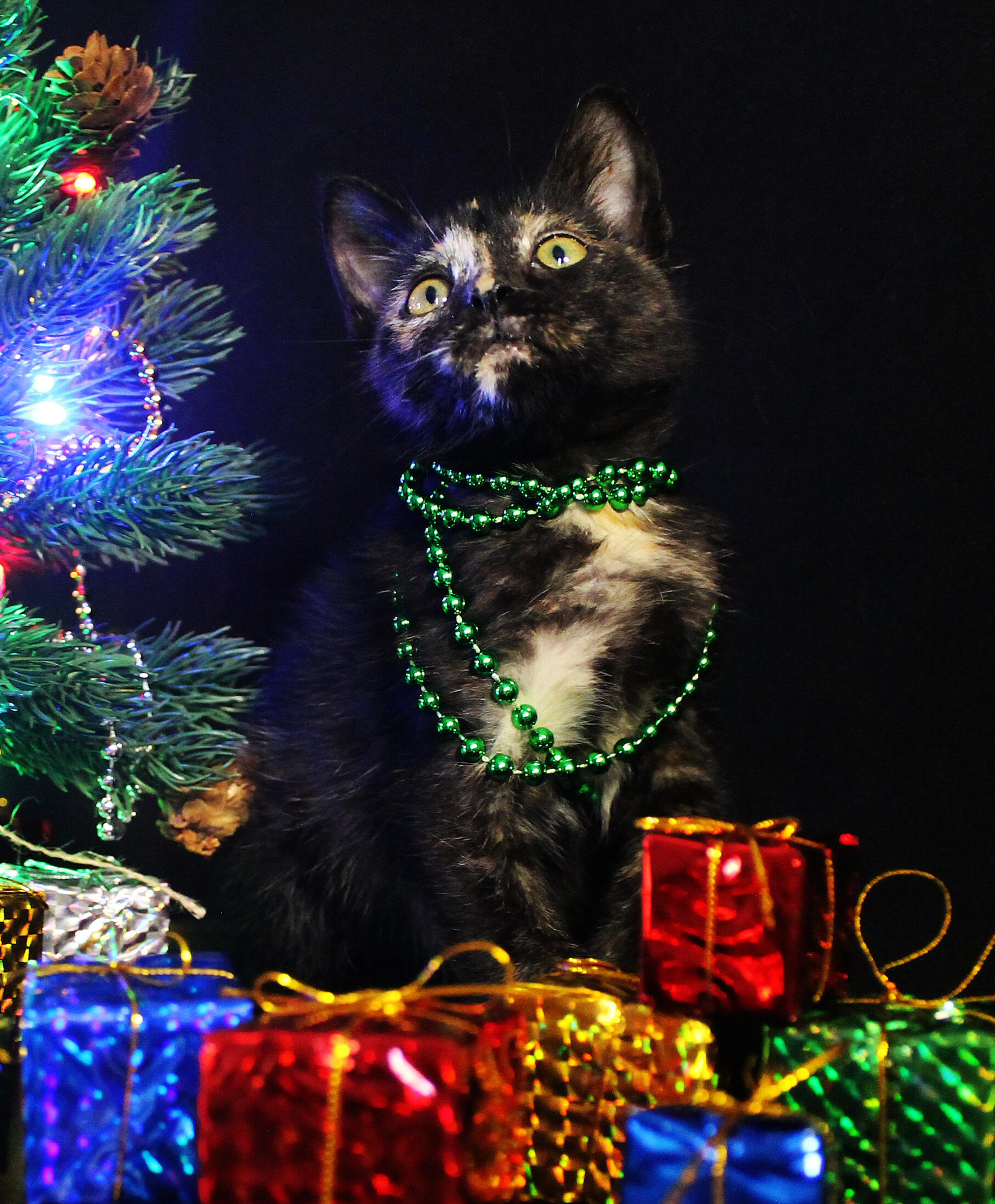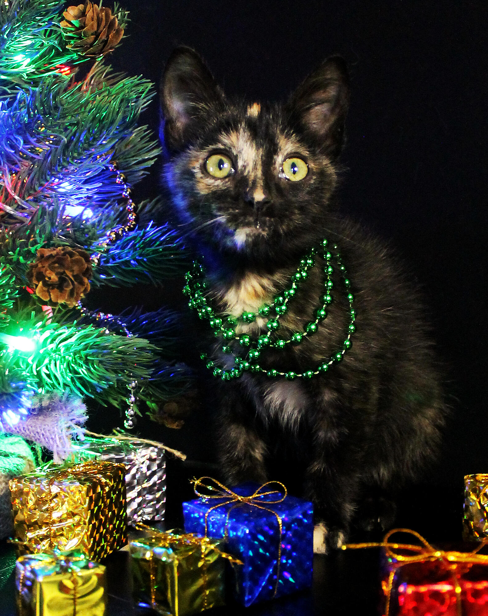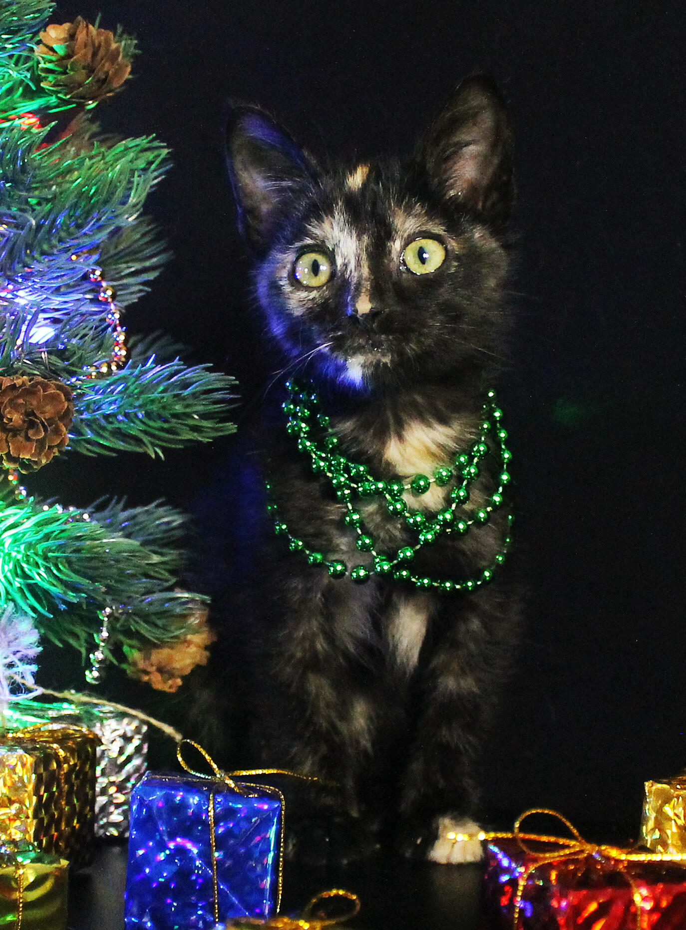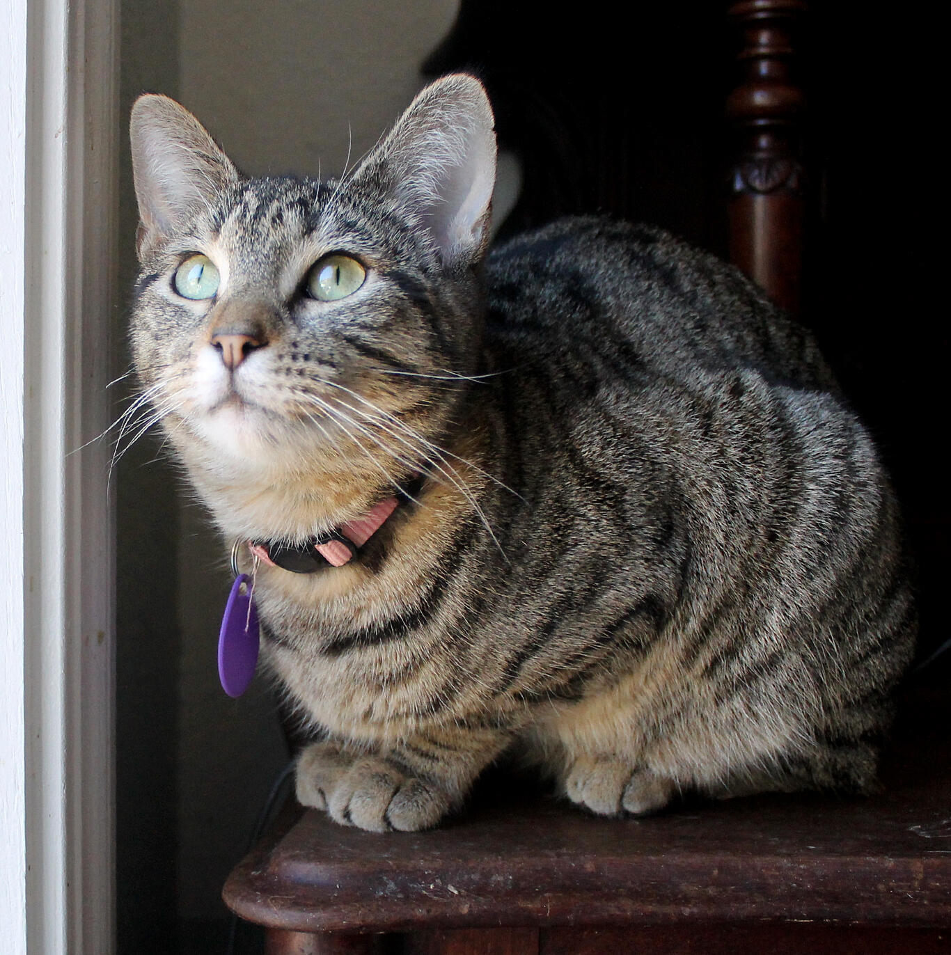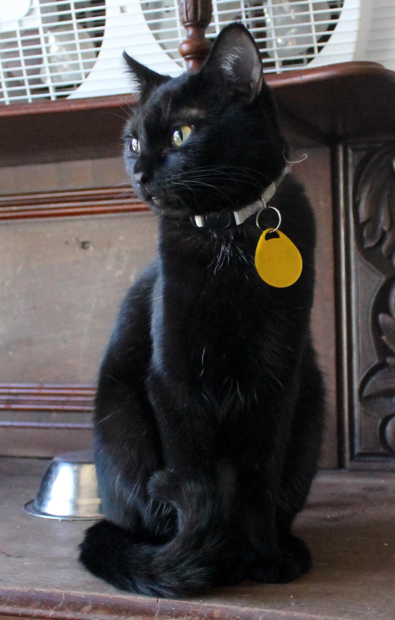 Penny is a friendly former feral kitty who has decided inside life is pretty ok so long as there's lots of toys. She is pretty outgoing, and quick to chase any string or ball you offer.Other cats and polie dogs are ok, and even kids are alright so long as they understand that Penny will set boundaries and expect them to be respected.