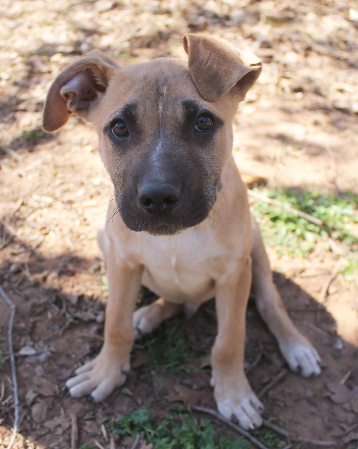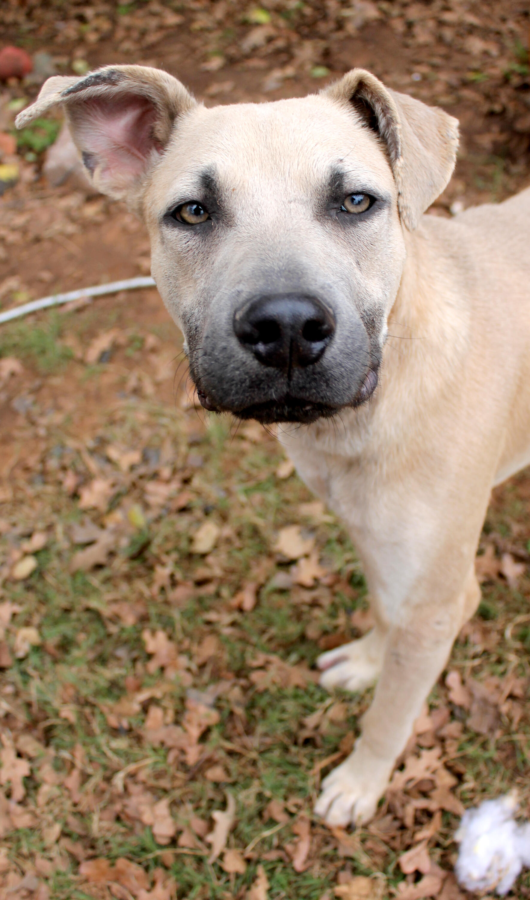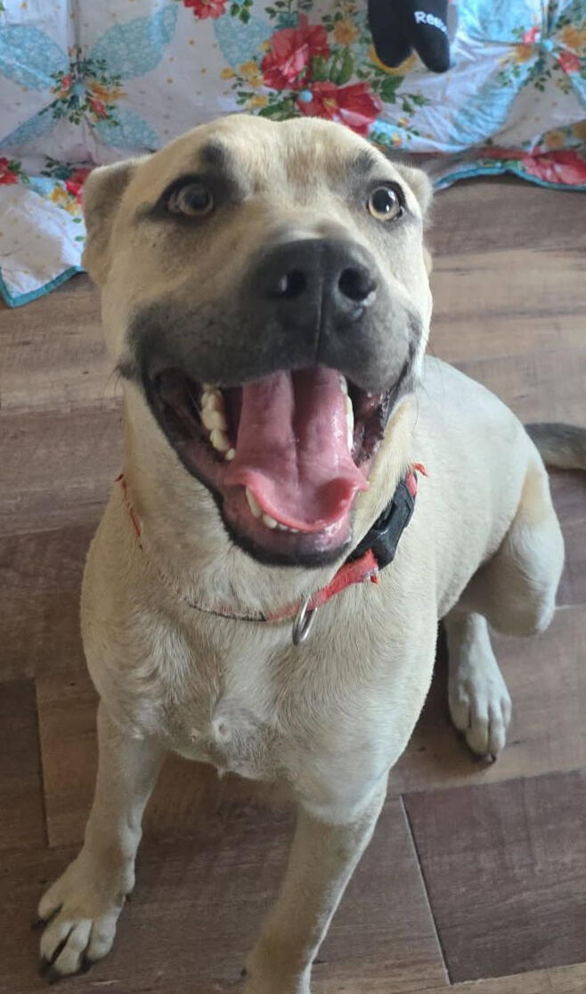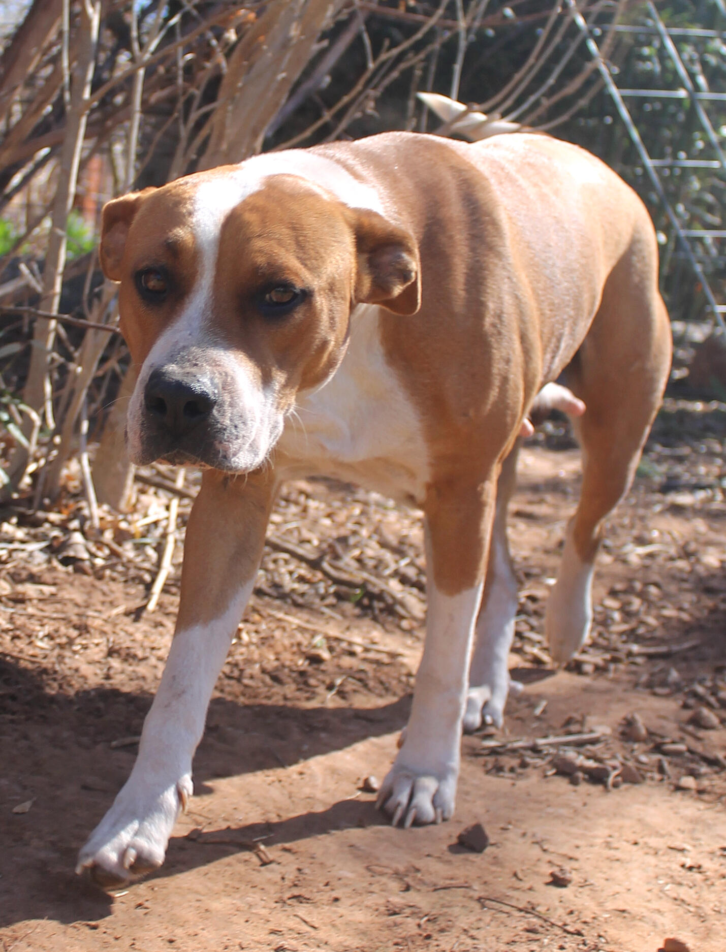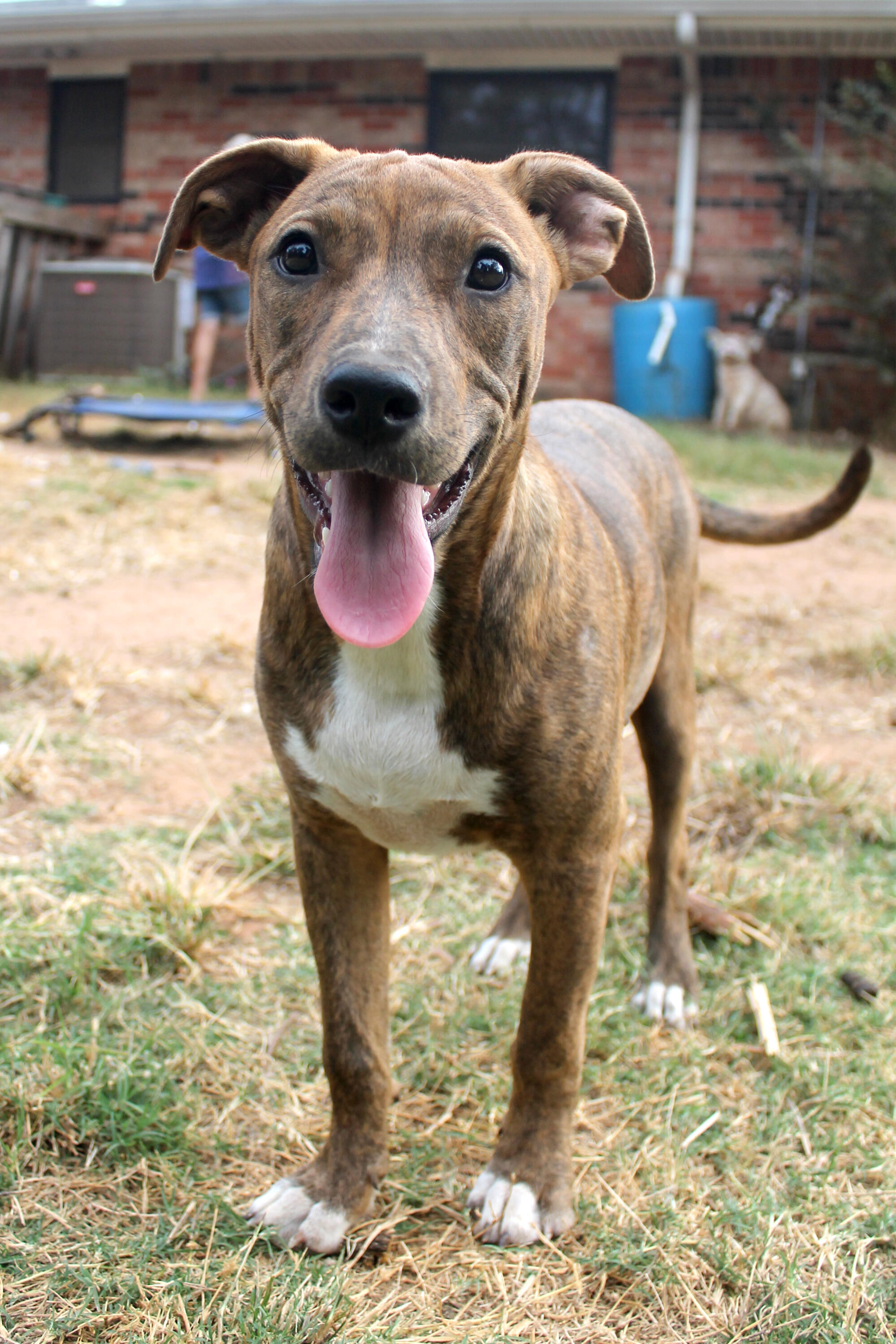 Venus came to us from OKC Animal Welfare's euth list. She does struggle with being crated, and barks at any passing dogs while she's contained.When she's outside of a kennel, Venus THRIVES! She loves dogs of all shapes and sizes, but plays best with pups who can keep up with a girl as big as her! Her paws are massive, so we know she's still got some growing to do, and will eventually reach Horse status closer to 1yr old.Due to a high prey drive, we do not suggest a home with chickens or rabbits unless an adopter is really willing to work on training her.