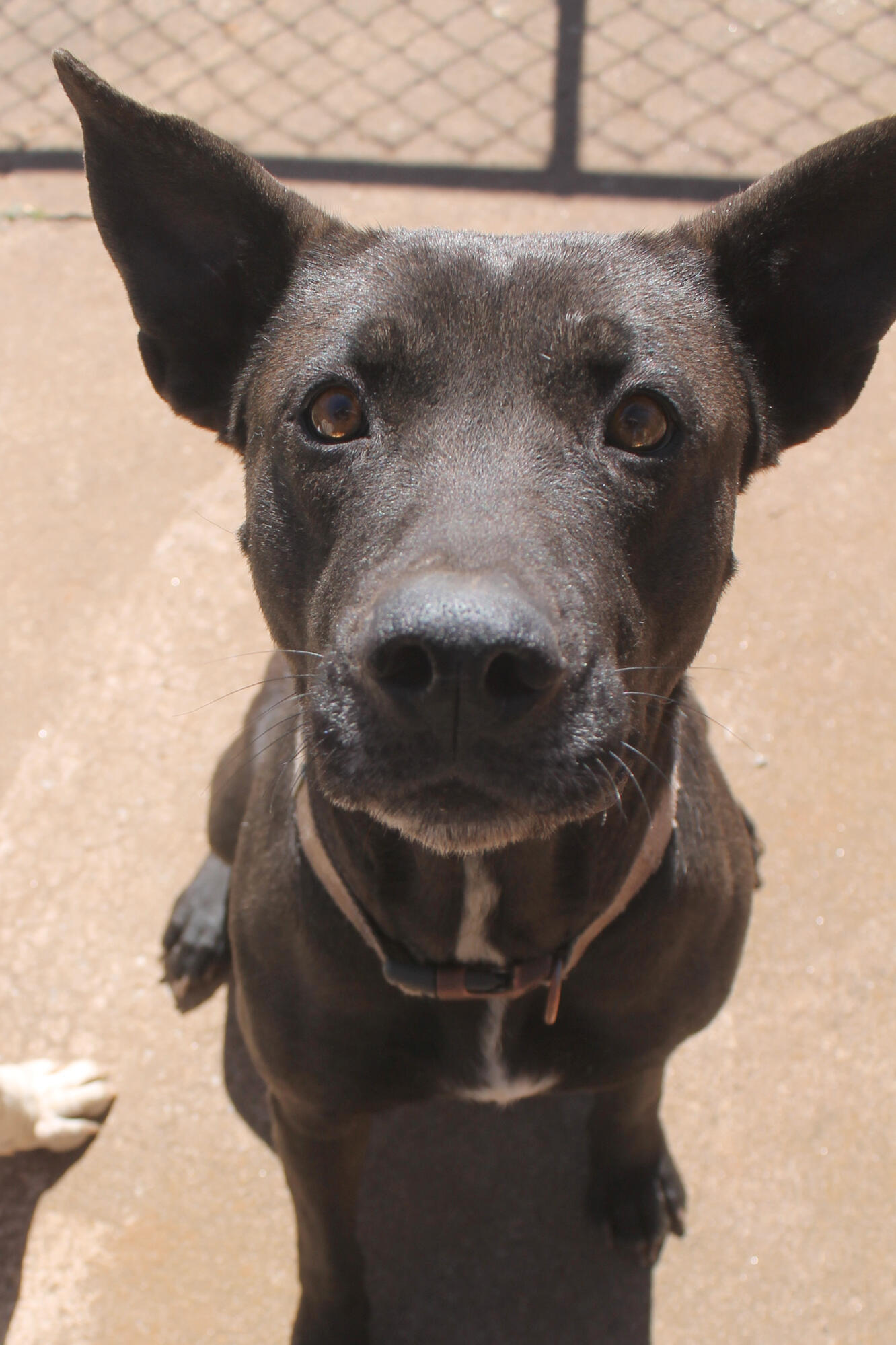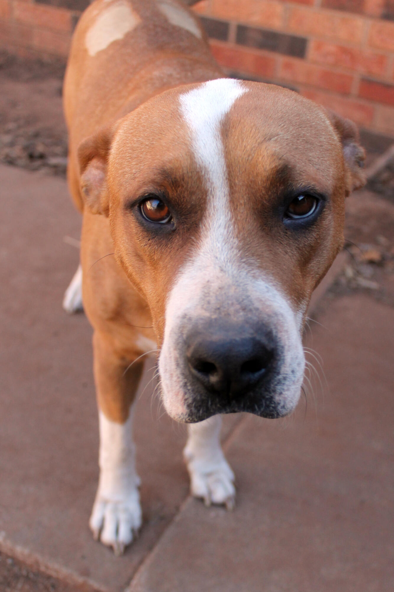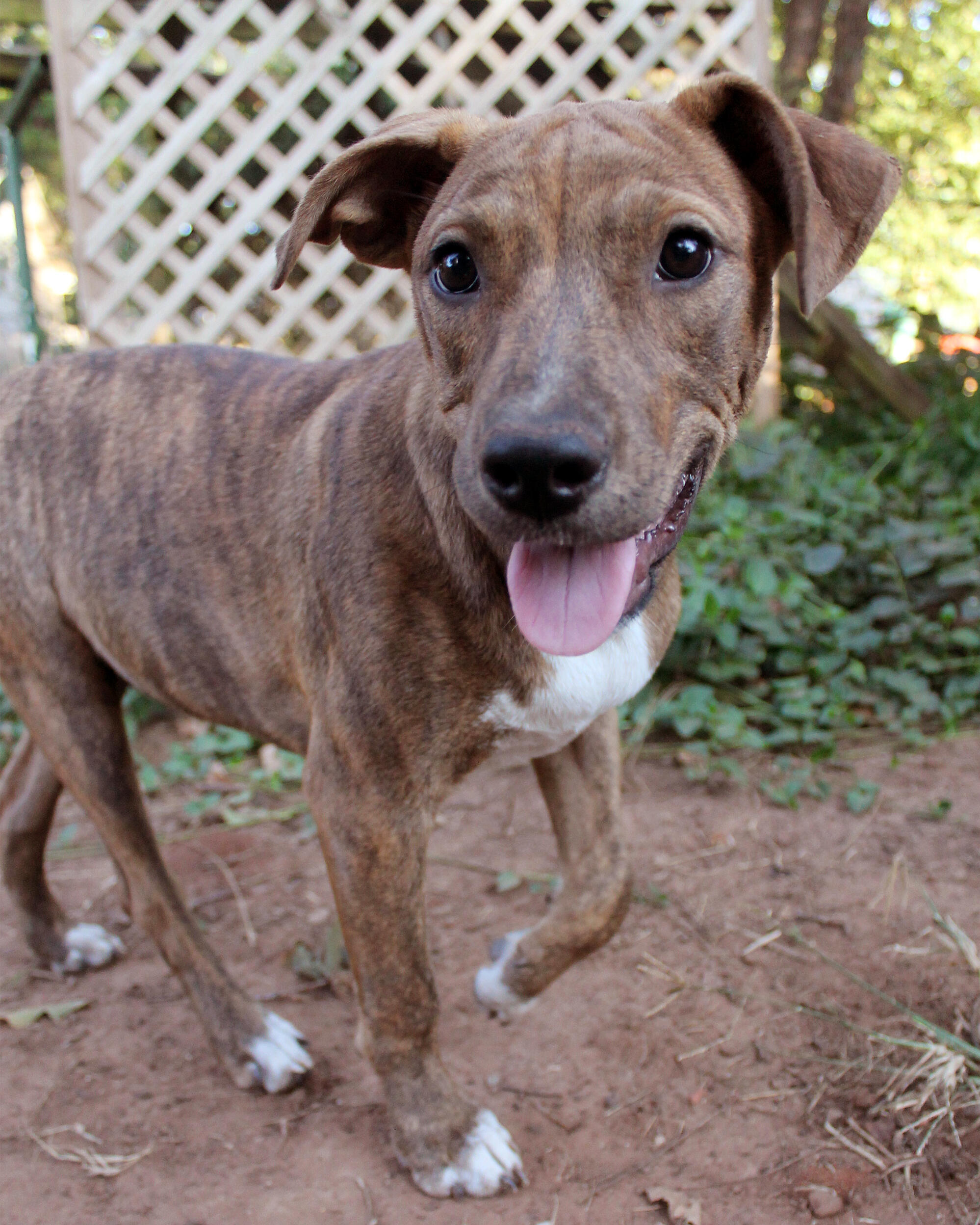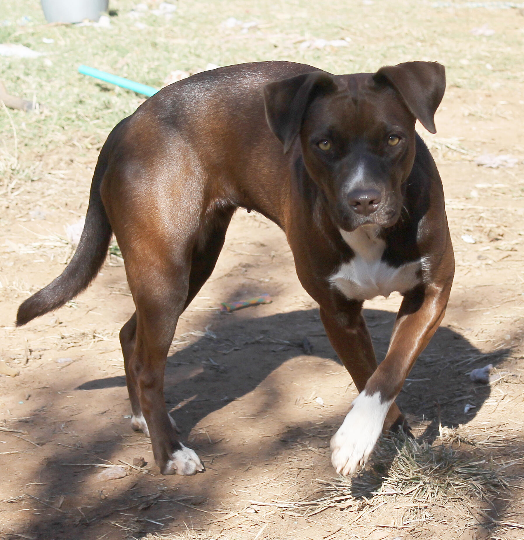 Venus came to us from OKC Animal Welfare's euth list. She does struggle with being crated, and barks at any passing dogs while she's contained.When she's outside of a kennel, Venus THRIVES! She loves dogs of all shapes and sizes, but plays best with pups who can keep up with a girl as big as her! Her paws are massive, so we know she's still got some growing to do, and will eventually reach Horse status closer to 1yr old.Due to a high prey drive, we do not suggest a home with chickens or rabbits unless an adopter is really willing to work on training her.