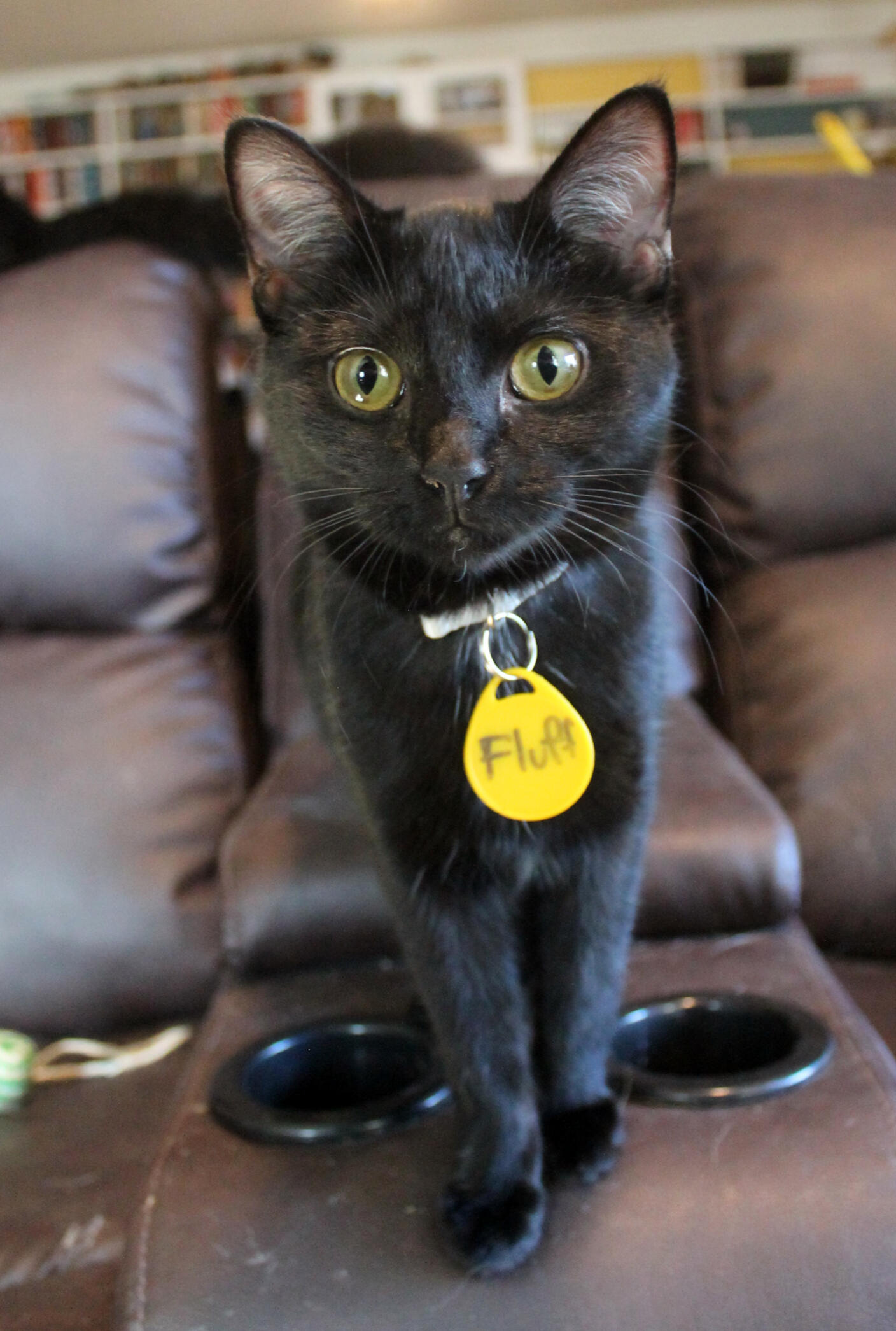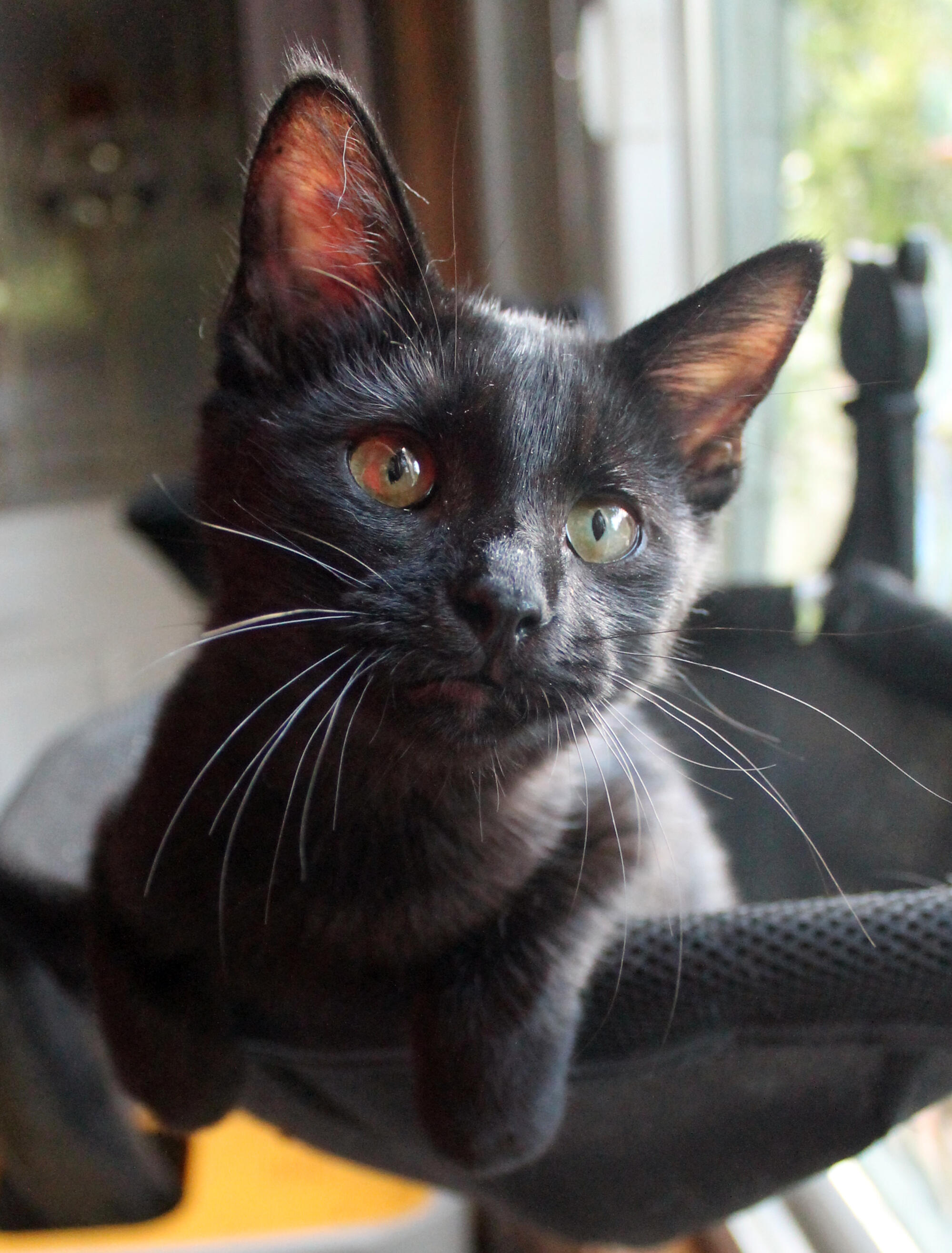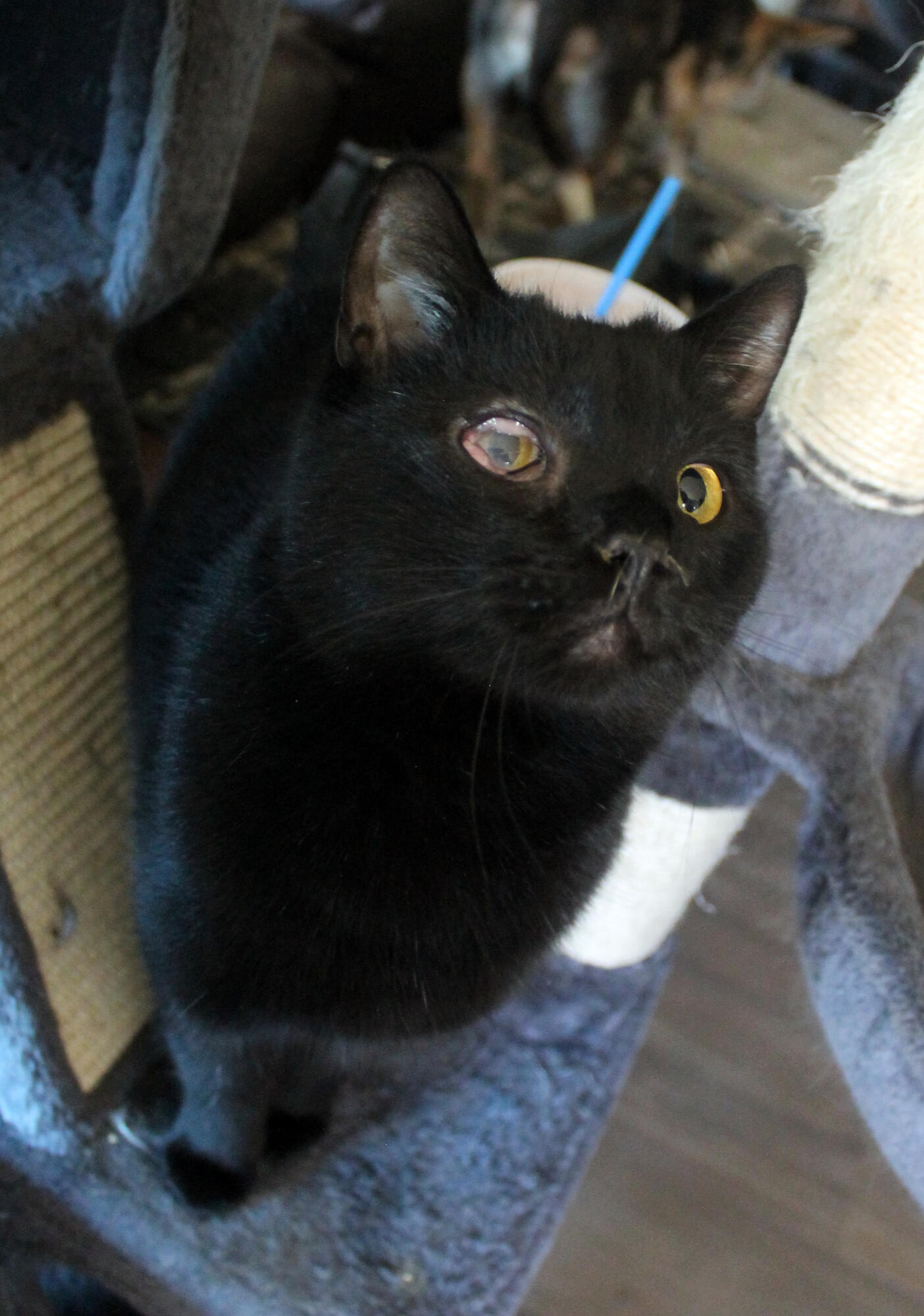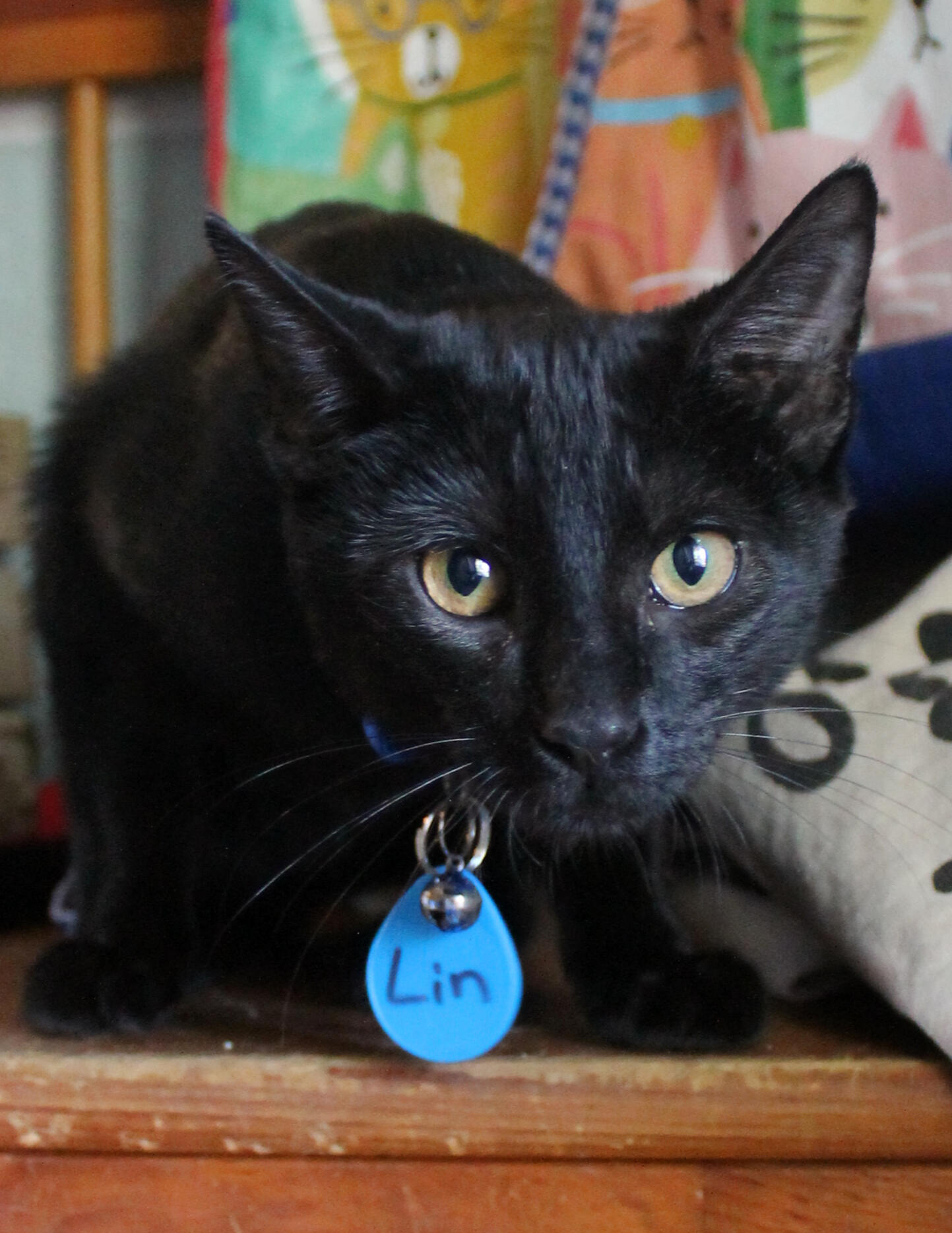 Sister of Lin, Fluf is a snuggly girl who loves her kitty friends. She's not quite as outgoing as her sibling, but she IS a total sweetheart!If you're wondering how we tell Fluf apart from the 12 other black cats in the rescue, she is our one black kitten who kinda has crazy eyes 😅 There's just a hint of Unhinged in the way she stares at you.