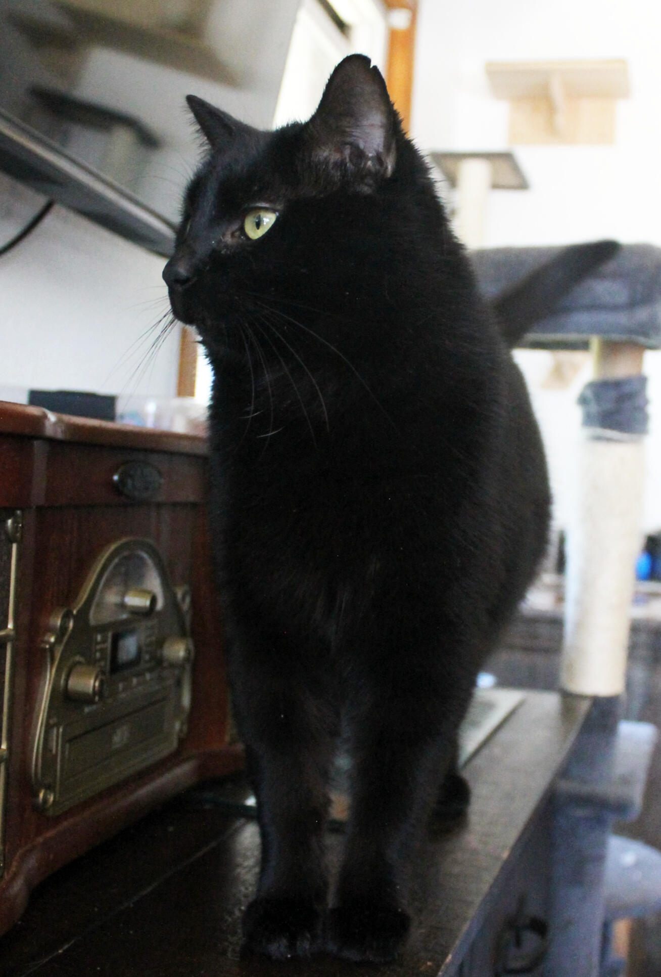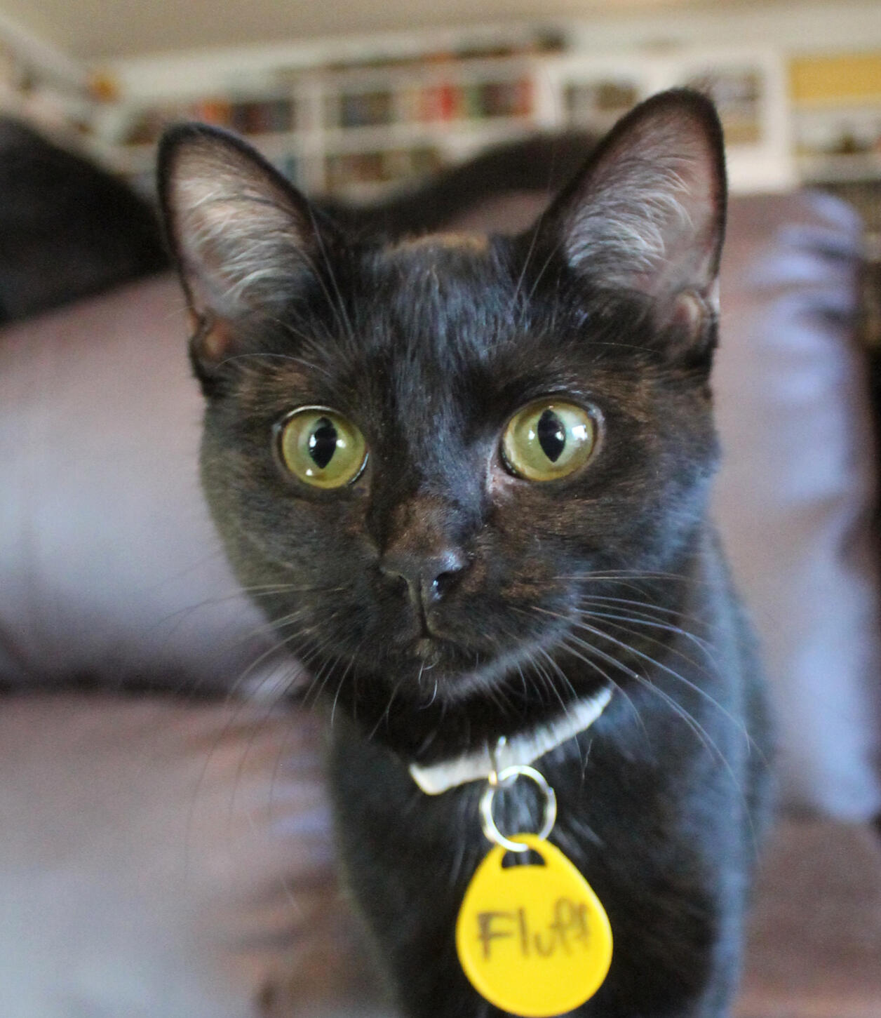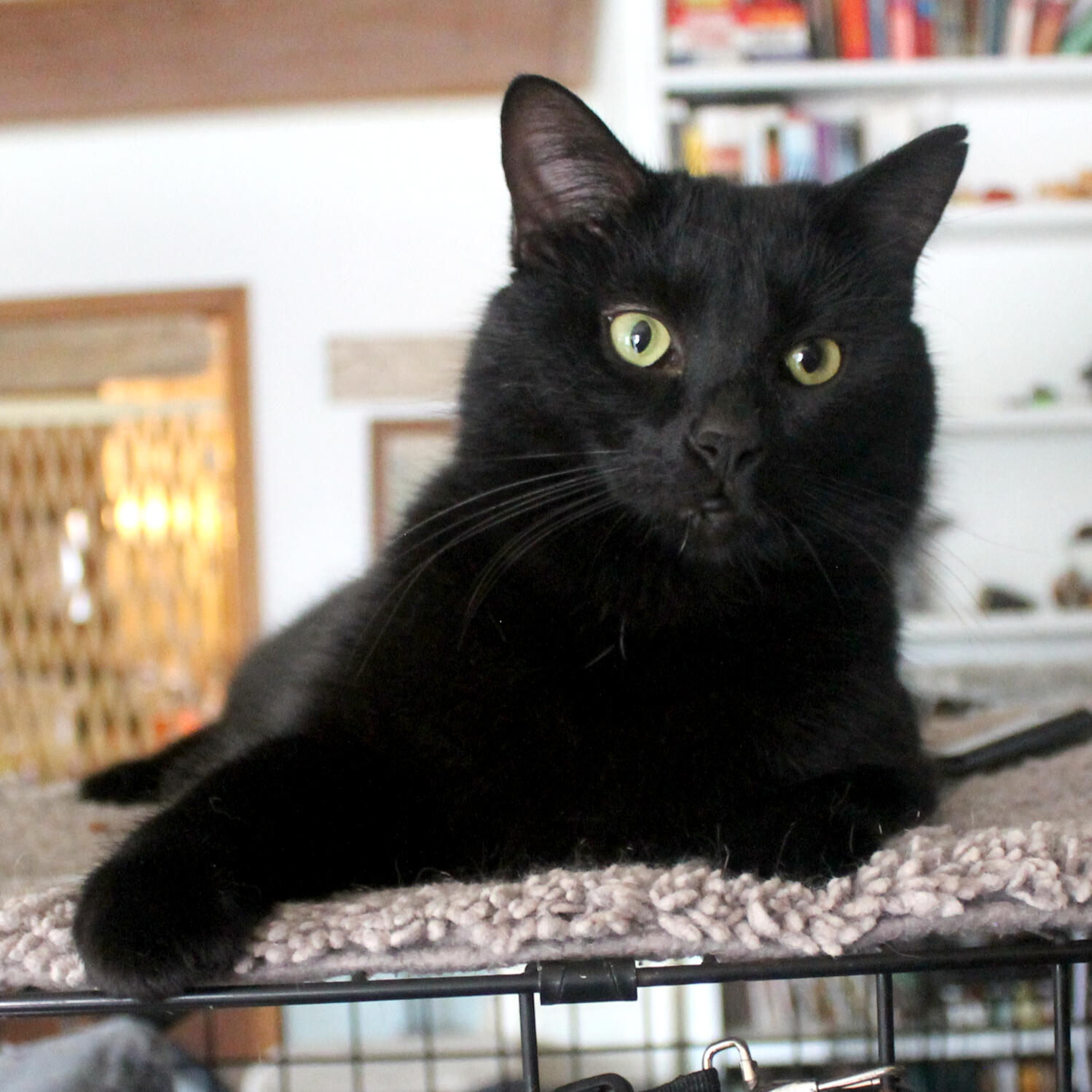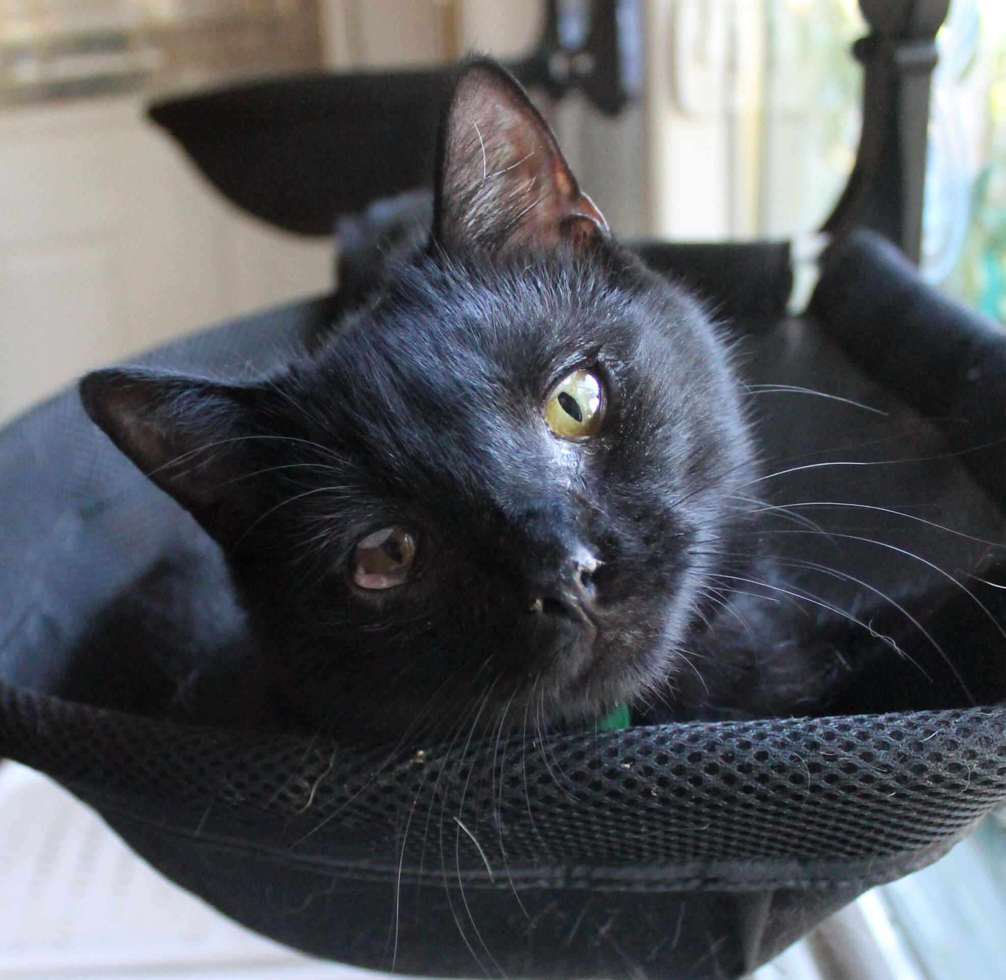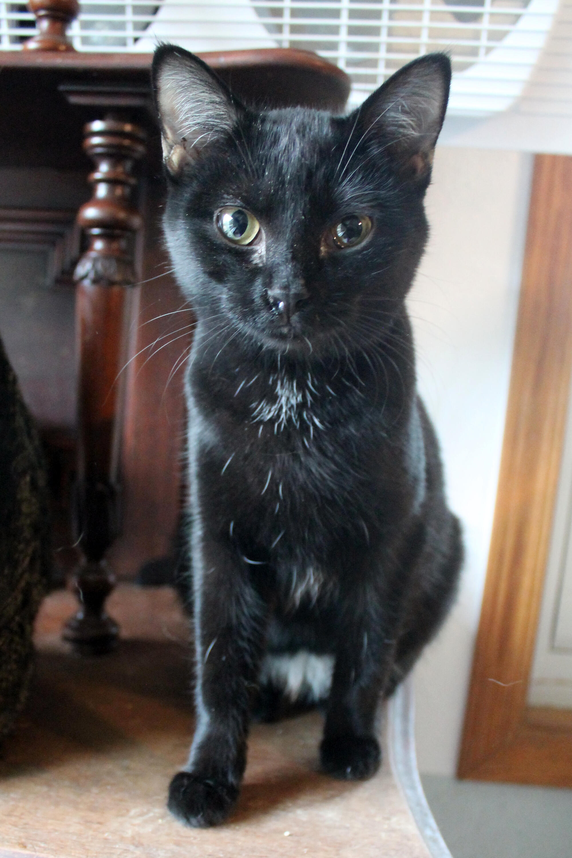 Sister of Lin, Fluf is a snuggly girl who loves her kitty friends. She's not quite as outgoing as her sibling, but she IS a total sweetheart!If you're wondering how we tell Fluf apart from the 12 other black cats in the rescue, she is our one black kitten who kinda has crazy eyes 😅 There's just a hint of Unhinged in the way she stares at you.