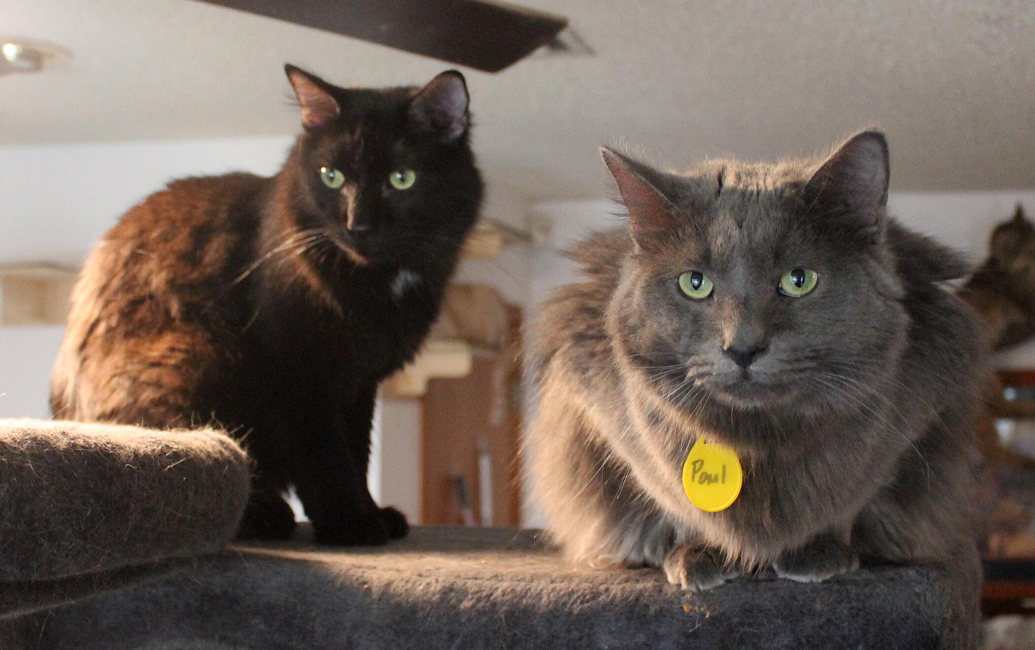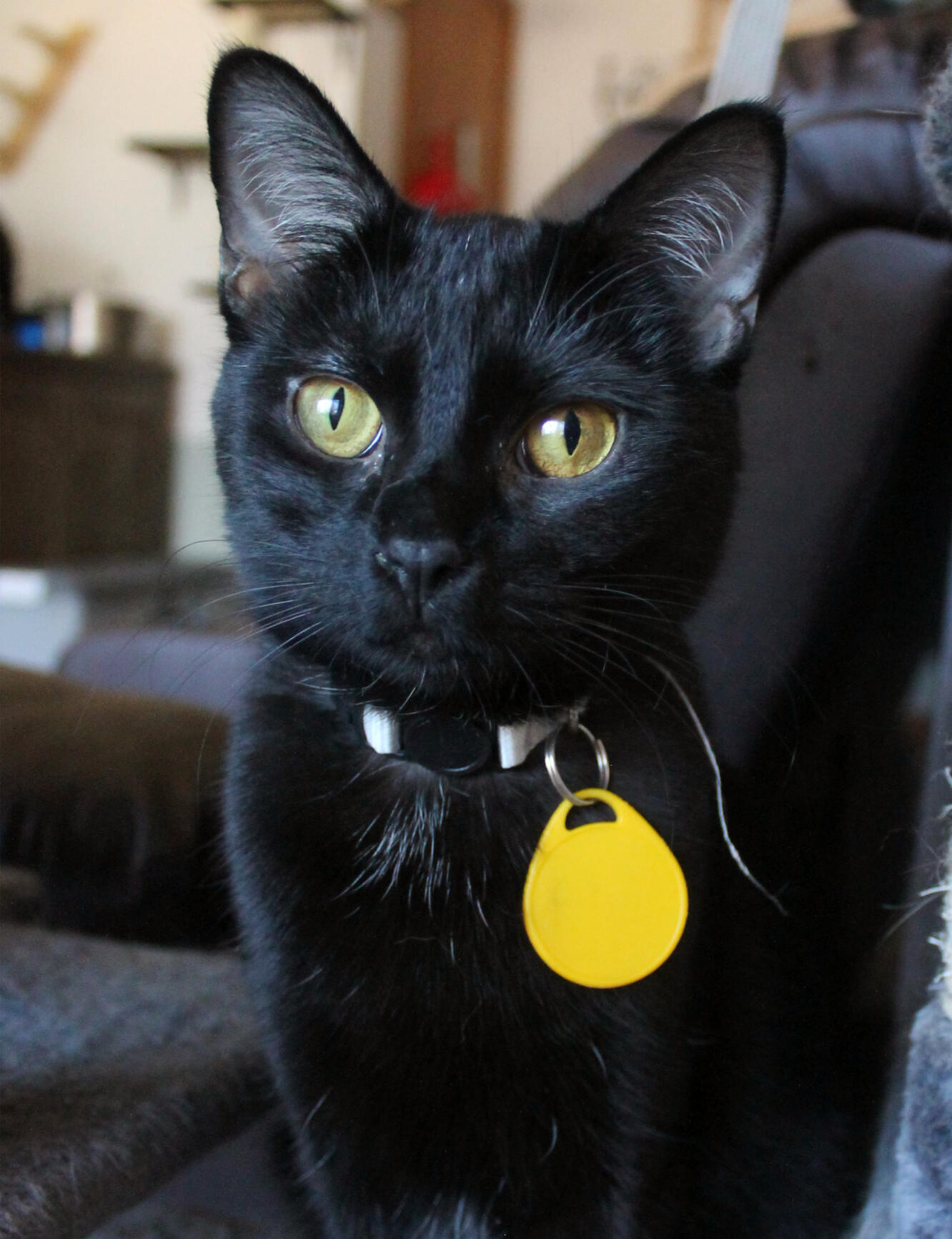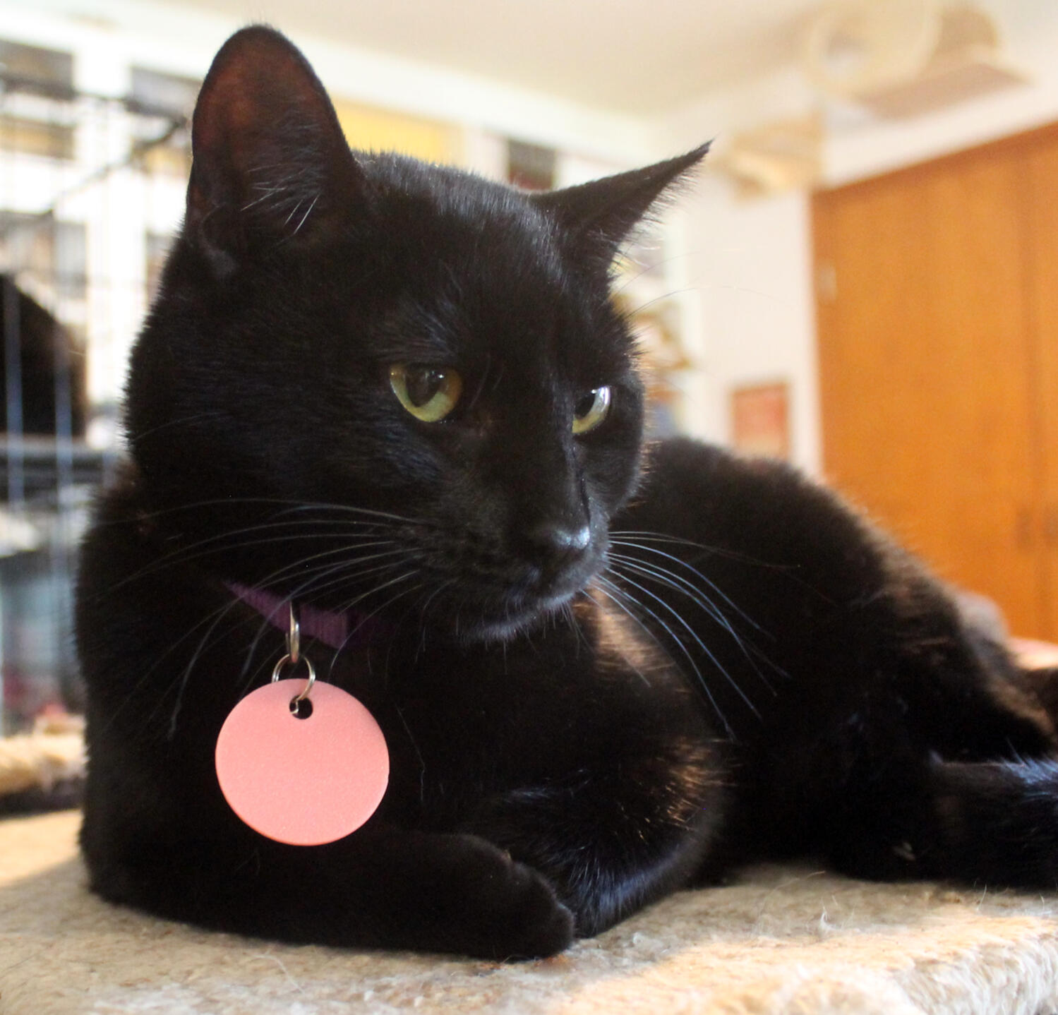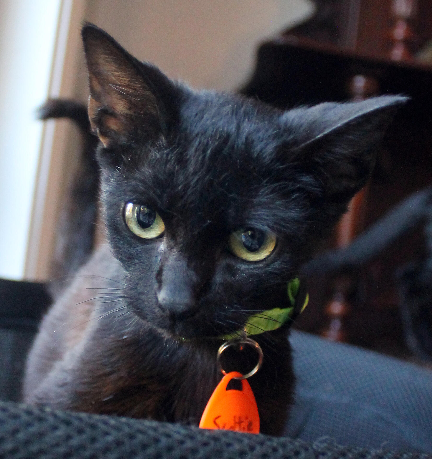 Sister of Lin, Fluf is a snuggly girl who loves her kitty friends. She's not quite as outgoing as her sibling, but she IS a total sweetheart!If you're wondering how we tell Fluf apart from the 12 other black cats in the rescue, she is our one black kitten who kinda has crazy eyes 😅 There's just a hint of Unhinged in the way she stares at you.