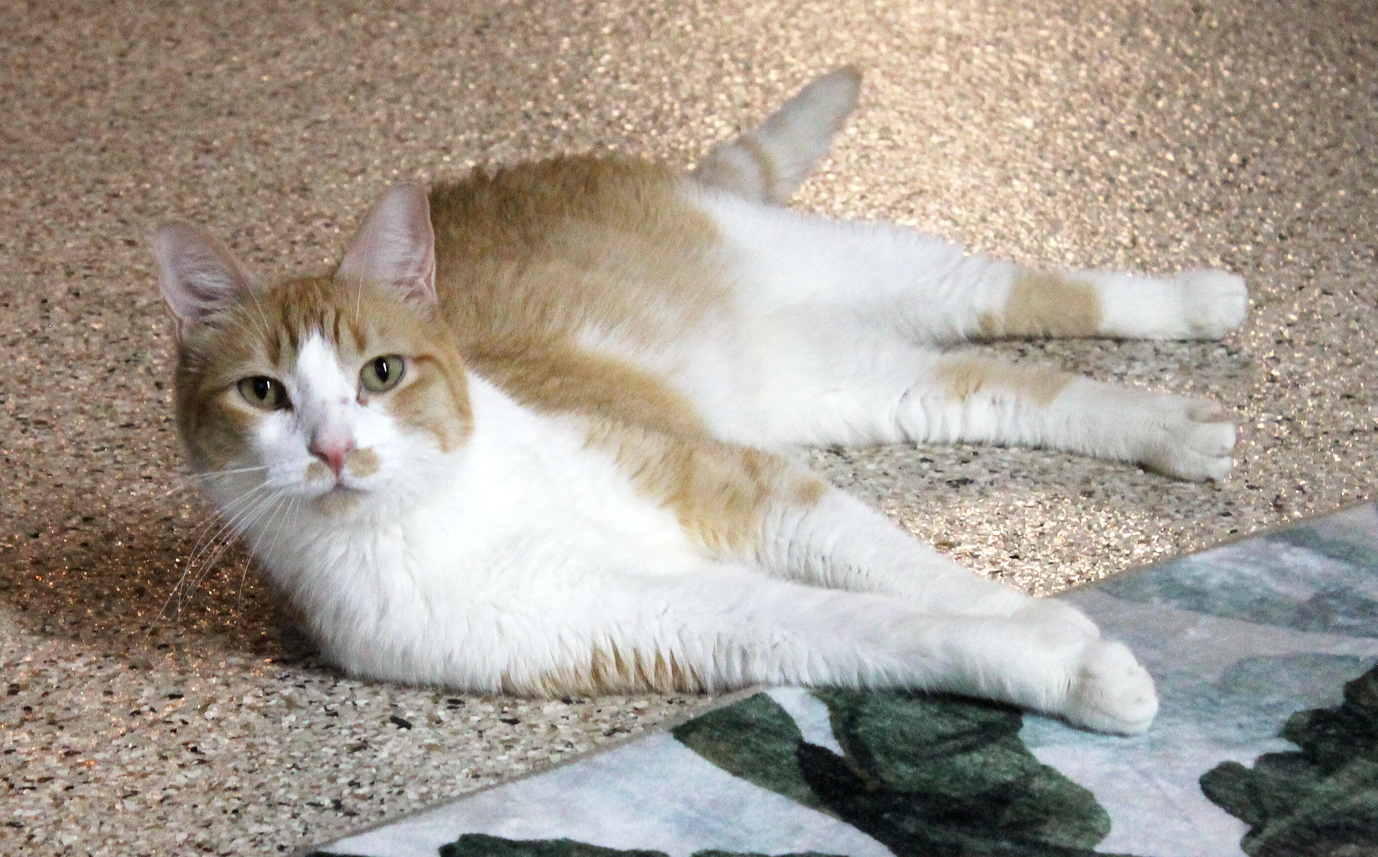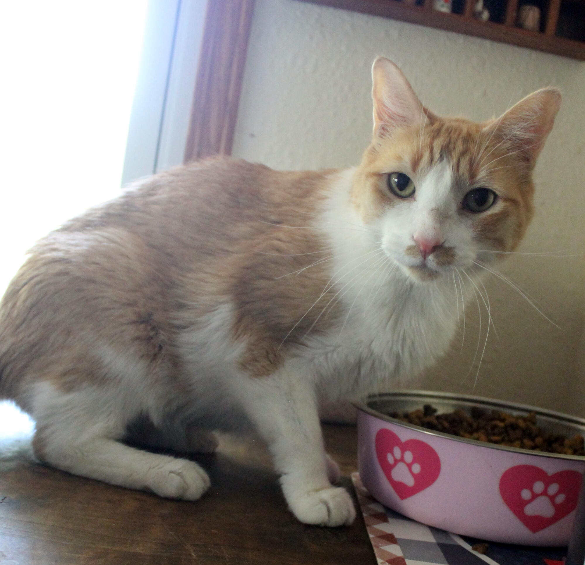 Ron was previously adopted from the rescue, but returned due to not liking the energetic dogs in his home 😔 We think Ron would do best in a family without dogs. He loves other cats, and is good with children!This sweet, gentle boy has very mild Cerebellar Hypoplasia, and holds his back legs a little differently. He is only a little unsteady on his feet, and has no real complications from it- it just makes him extra unique!