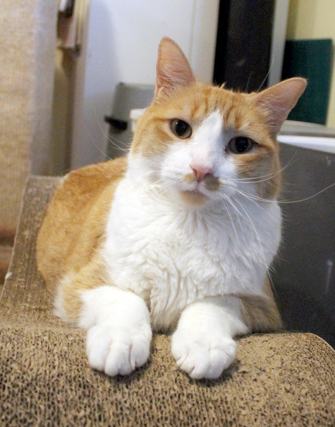 Chonk is a big boy with a lot of love to give. He entered the rescue weighing 18lbs, and has gotten down to 16lbs now 💖 He is doing well on his health journey, and loves to headbump anyone who will let him.This sweet man is kid, cat and dog friendly, and woul enjoy a home where he can be on a lap as often as possible. Sunny windows and cat trees are almost just as good of a nap location, though!