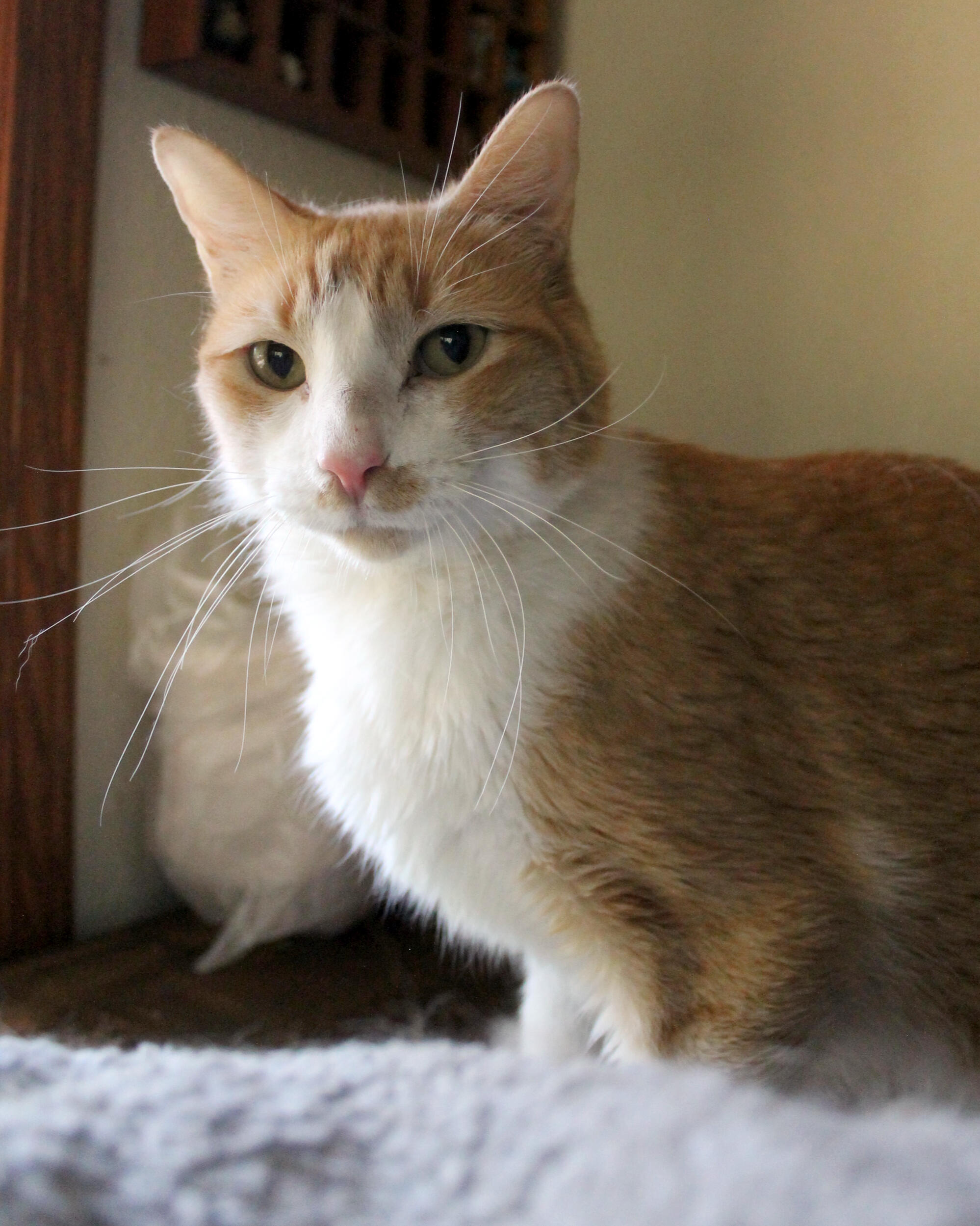 This boy is as chill as they come, and would love to hang out with you! He loves chin scratches, cheek rubs, and a good ol' fashion sun beam to laze in.Henry is ok with other polite pets, so long as they don't force touch upon him- he likes to go at his own pace. Kids are also ok so long as they respect boundaries! He'd make a wonderful pet for a family who wants a cat to be involved in everything they do.