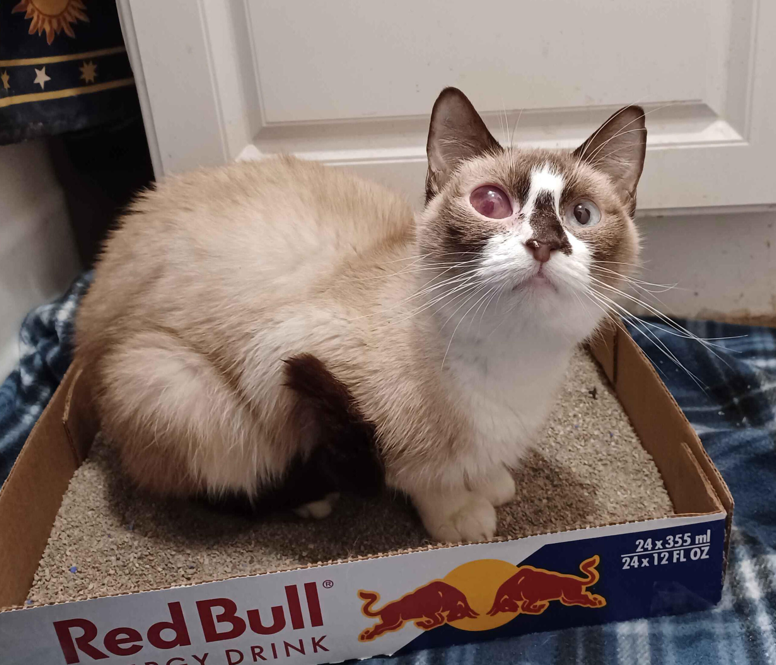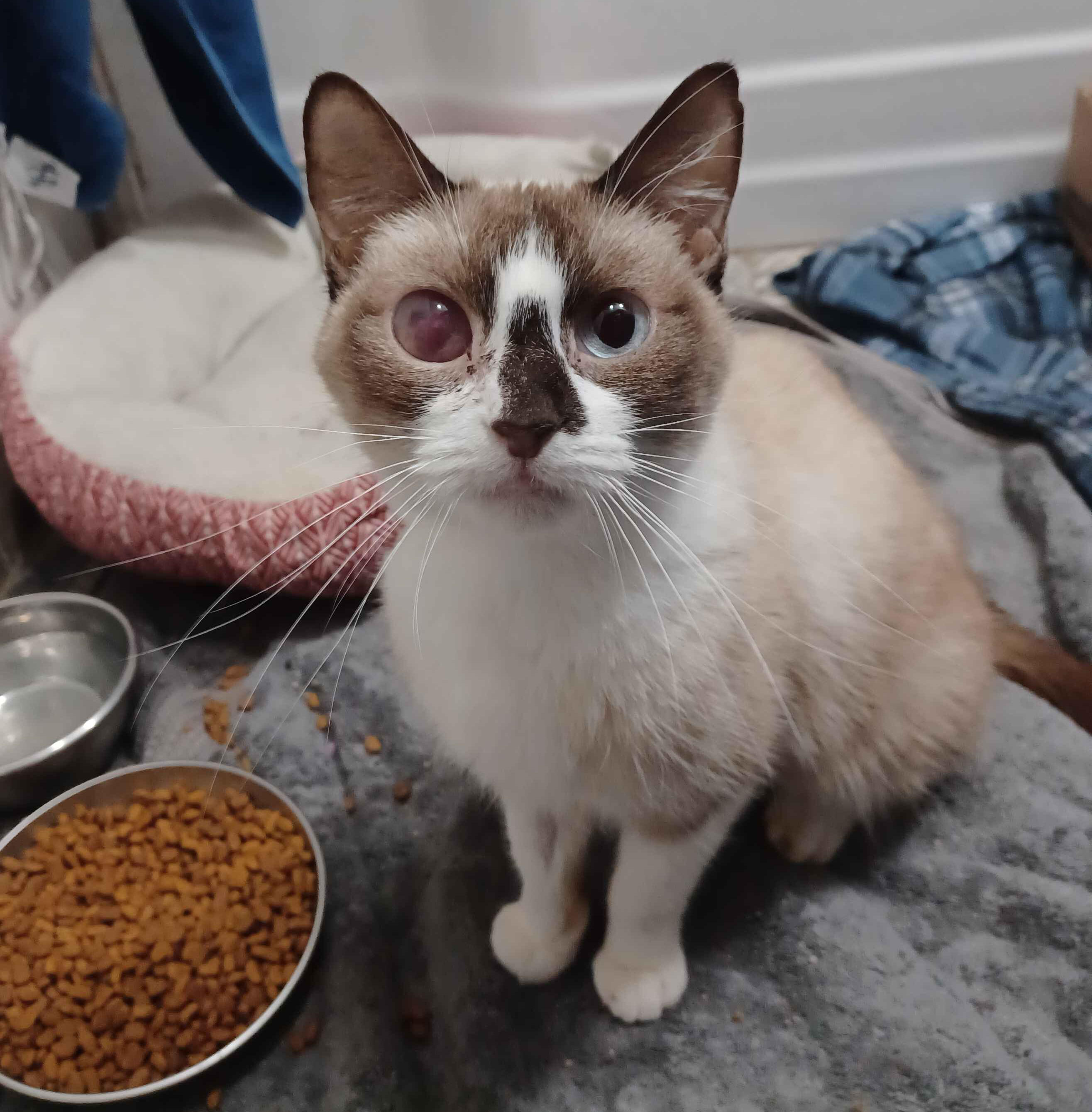 Ariel came to us from an independant rescuer who knew her care was above what she could provide. Ariel is in a medical foster home, and we are currently treating for Ocular FIP. She has some other issues, and likely will need her eye out 💔FIP treatment is 3 months long.