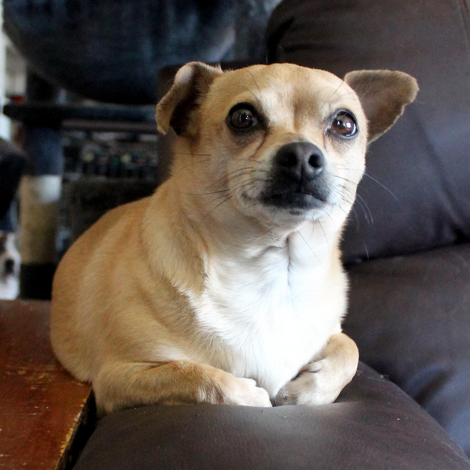 This little man is full of sass and love, all at the same time. Bandito wants to rule your lap with an iron fist, but will reward gentle pets with the softest of kisses if he deems you worthy.If bratty little dogs is your jam, Bandito might just be your jelly. He does not like being picked up- but will climb into your arms when he wants, where he wants. We're not sure he knows he isn't a cat, honestly. Because of his nippy nature, Bandito would be best in a home without children. Polite ones would likely be fine for visits, but when this guy is done, he's REALLY done. Other animals his size are A-OK, though!