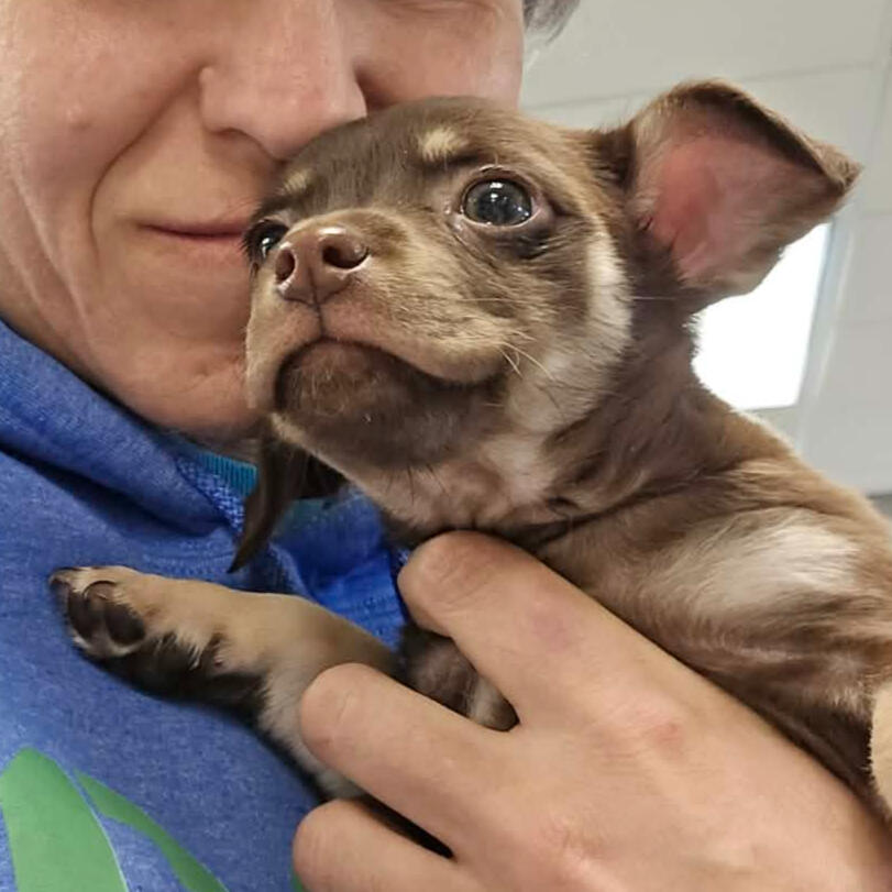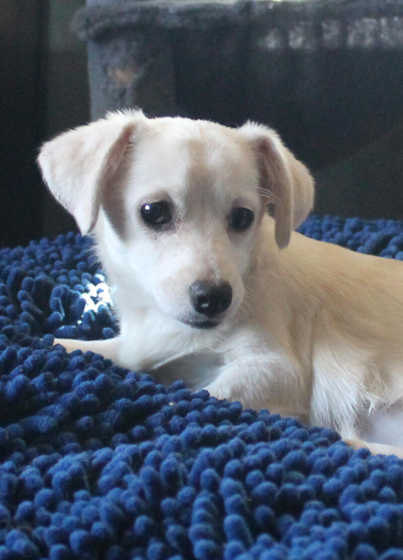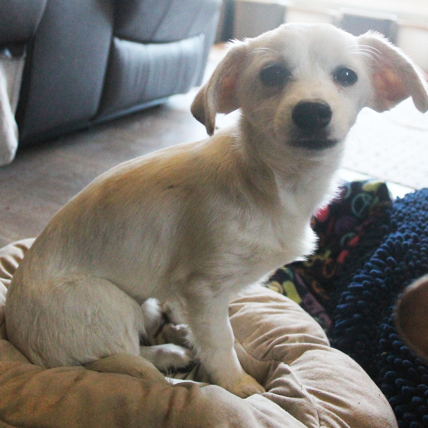 This goober is full of beans pretty much all the time. He's a super silly little man who loves a good cuddle just a little less than he loves to lick your face. Mac has all that expected puppy energy, but has been doing very well with house training, despite his extremely distractable nature. Mac loves all other animals, and isn't even afraid of the big dogs! Kids would be GREAT for this little busybody.