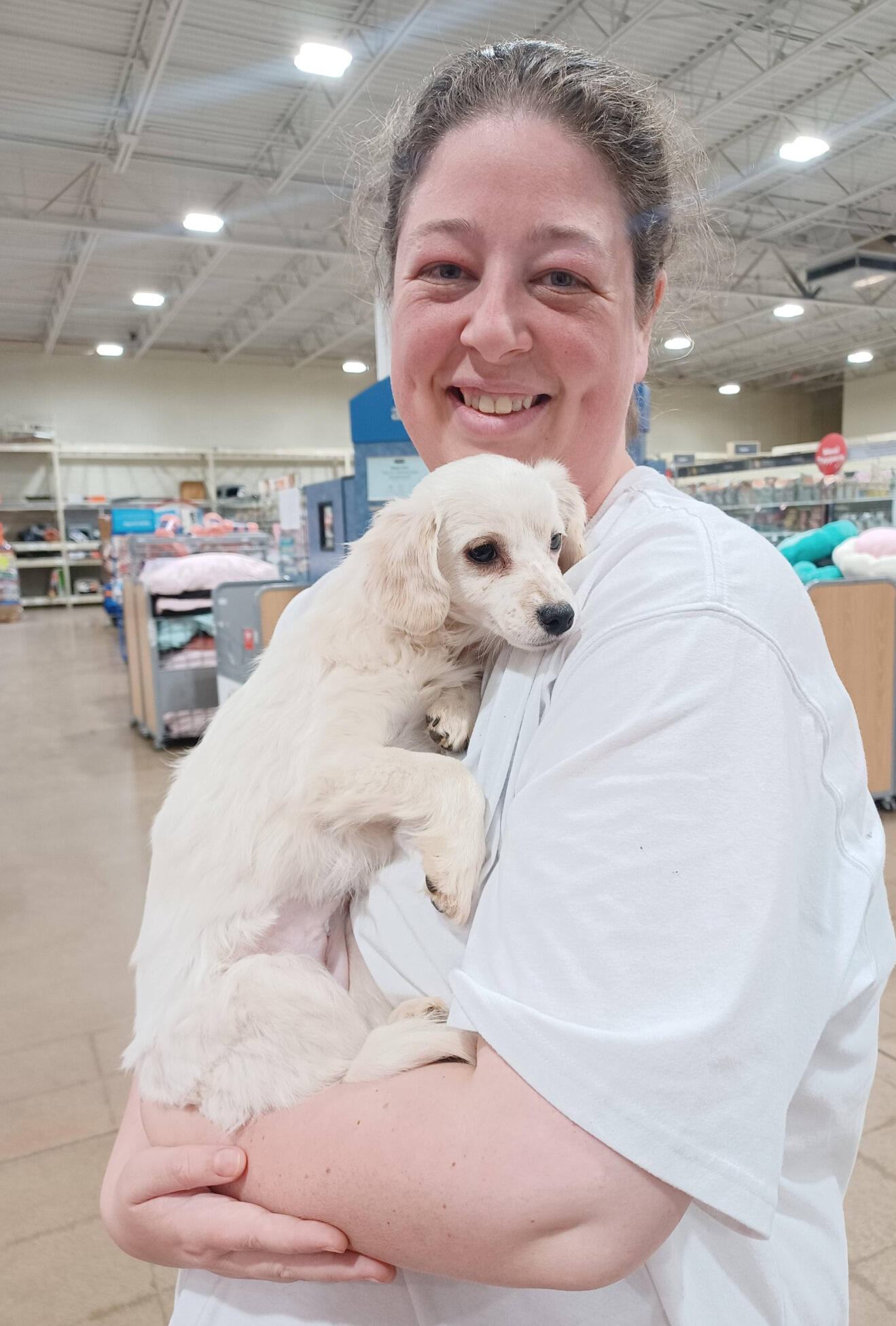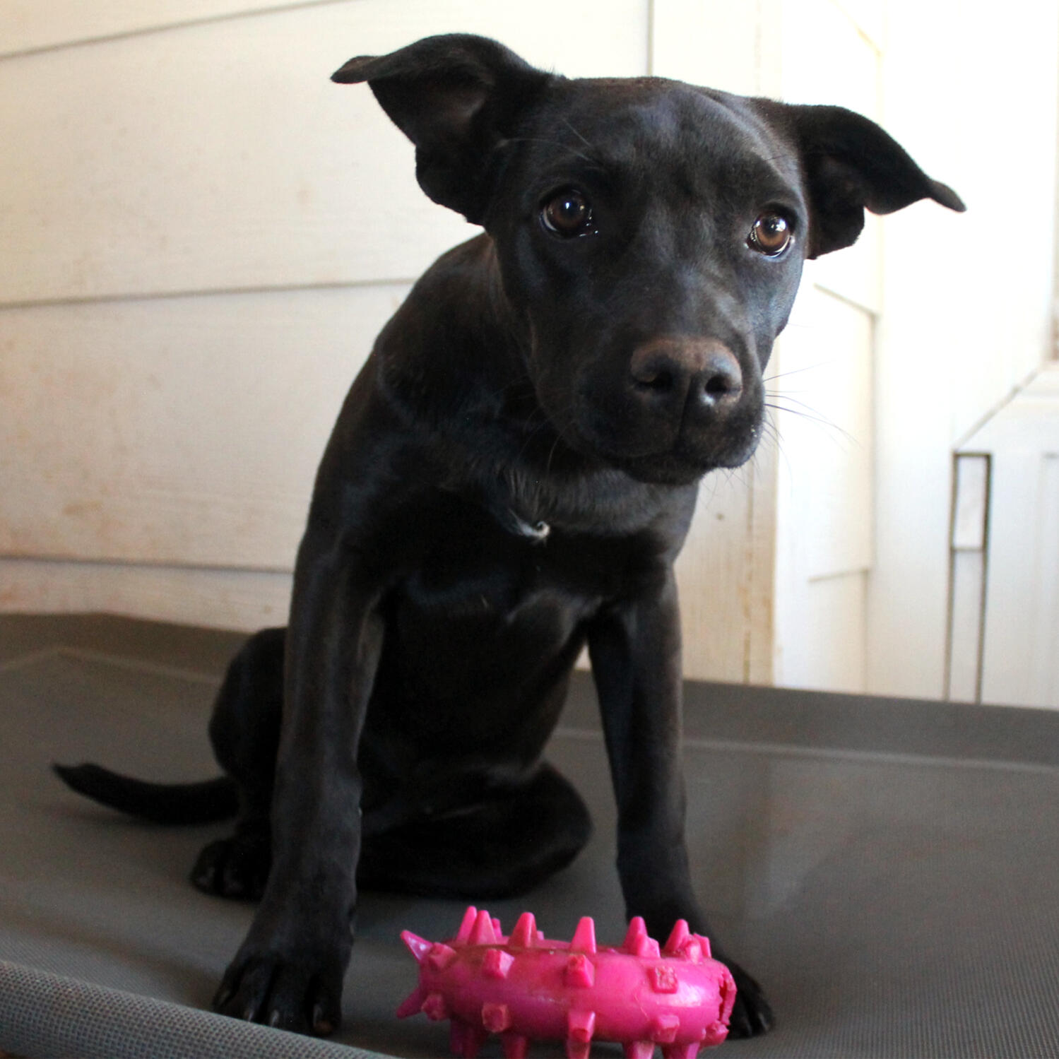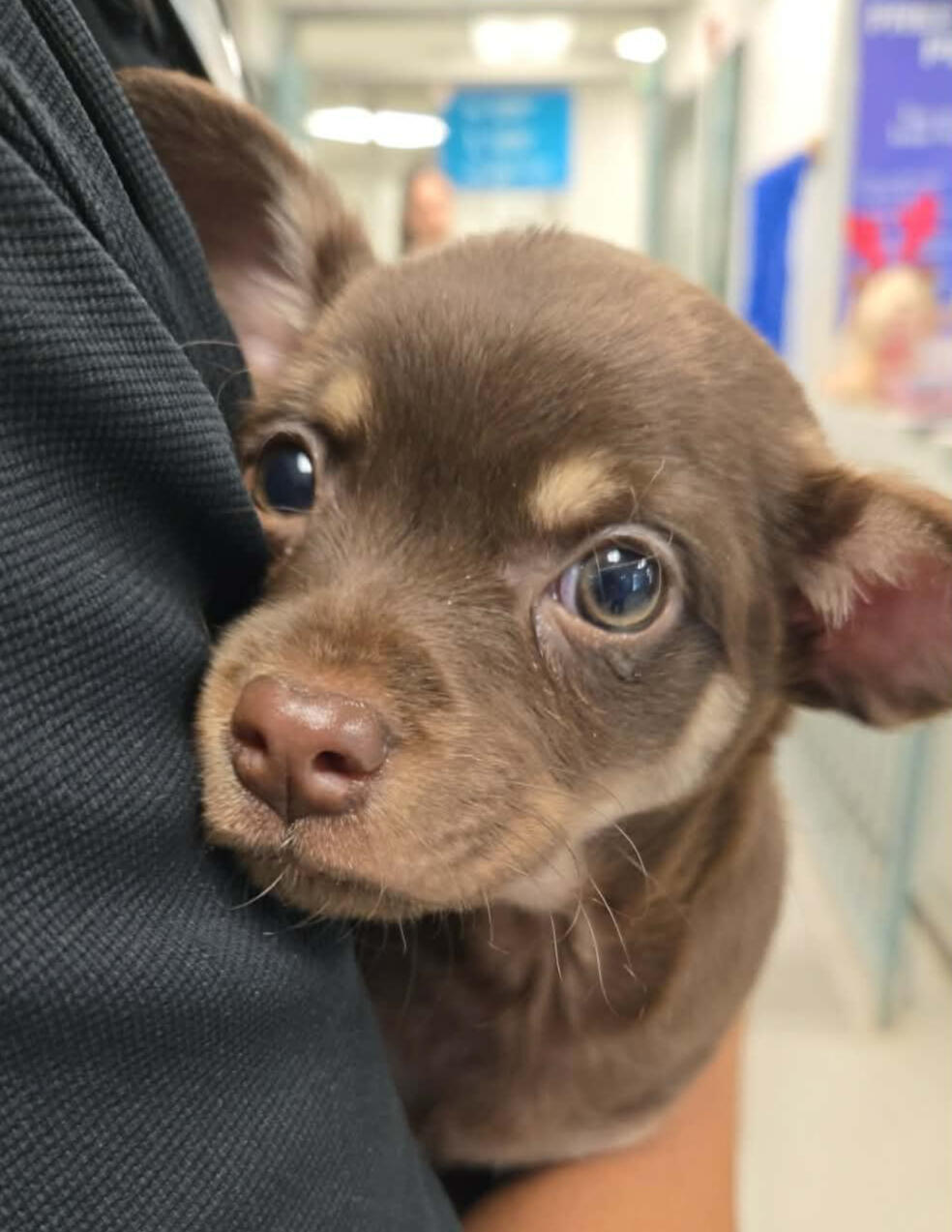 This goober is full of beans pretty much all the time. He's a super silly little man who loves a good cuddle just a little less than he loves to lick your face. Mac has all that expected puppy energy, but has been doing very well with house training, despite his extremely distractable nature. Mac loves all other animals, and isn't even afraid of the big dogs! Kids would be GREAT for this little busybody.