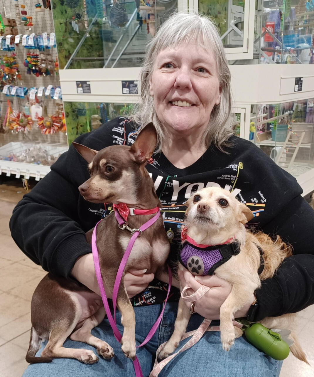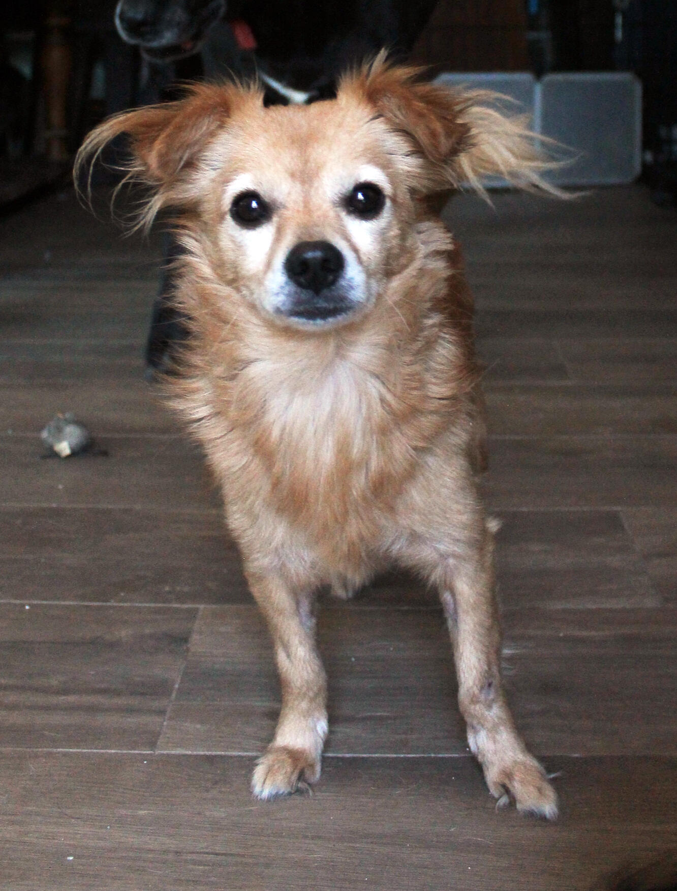 Robin and her friends came to the rescue from a city animal shelter. All 4 suffered severe neglect, likely as their caretaker aged 😢 We do not think any of them had seen outside in a long time, nor had they seen a vet.Robin was very sick for a while, and still has a lingering cough. This does not stop her from playing and running around the rescue with the big dogs! She's a tiiny little lap buddy who loves absolutely everyone- kids, cats, dogs, you name it! She will even offer her fav toy to new dogs when saying hello 🥺