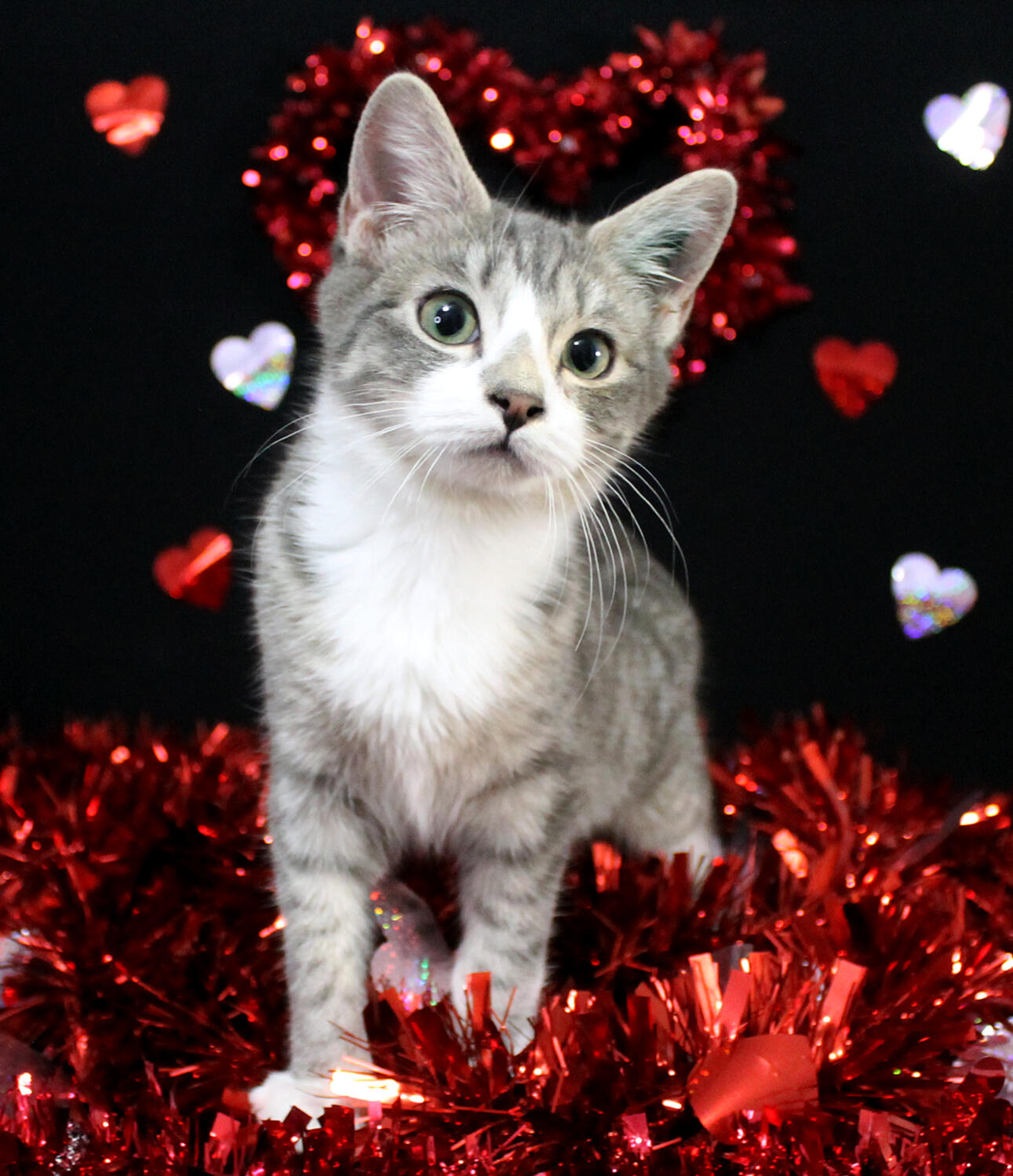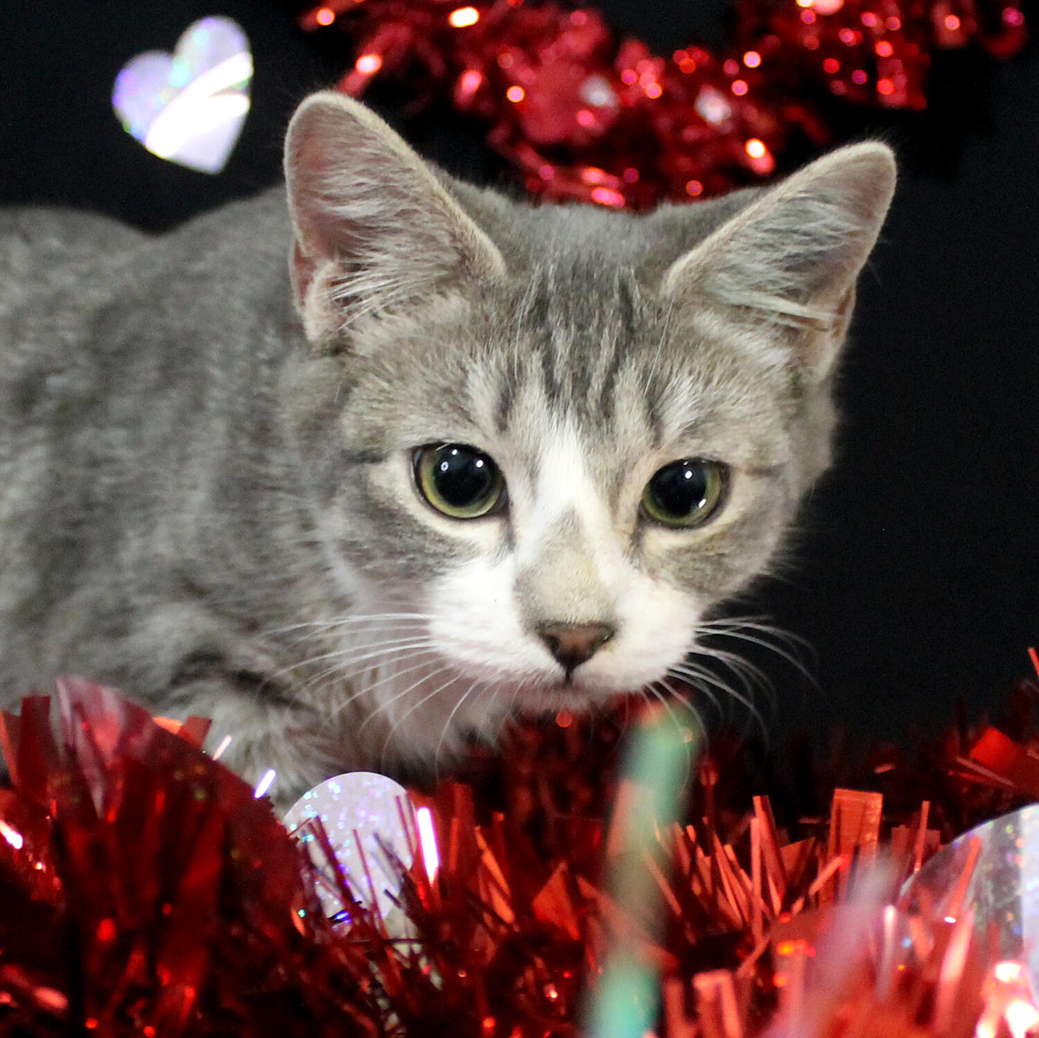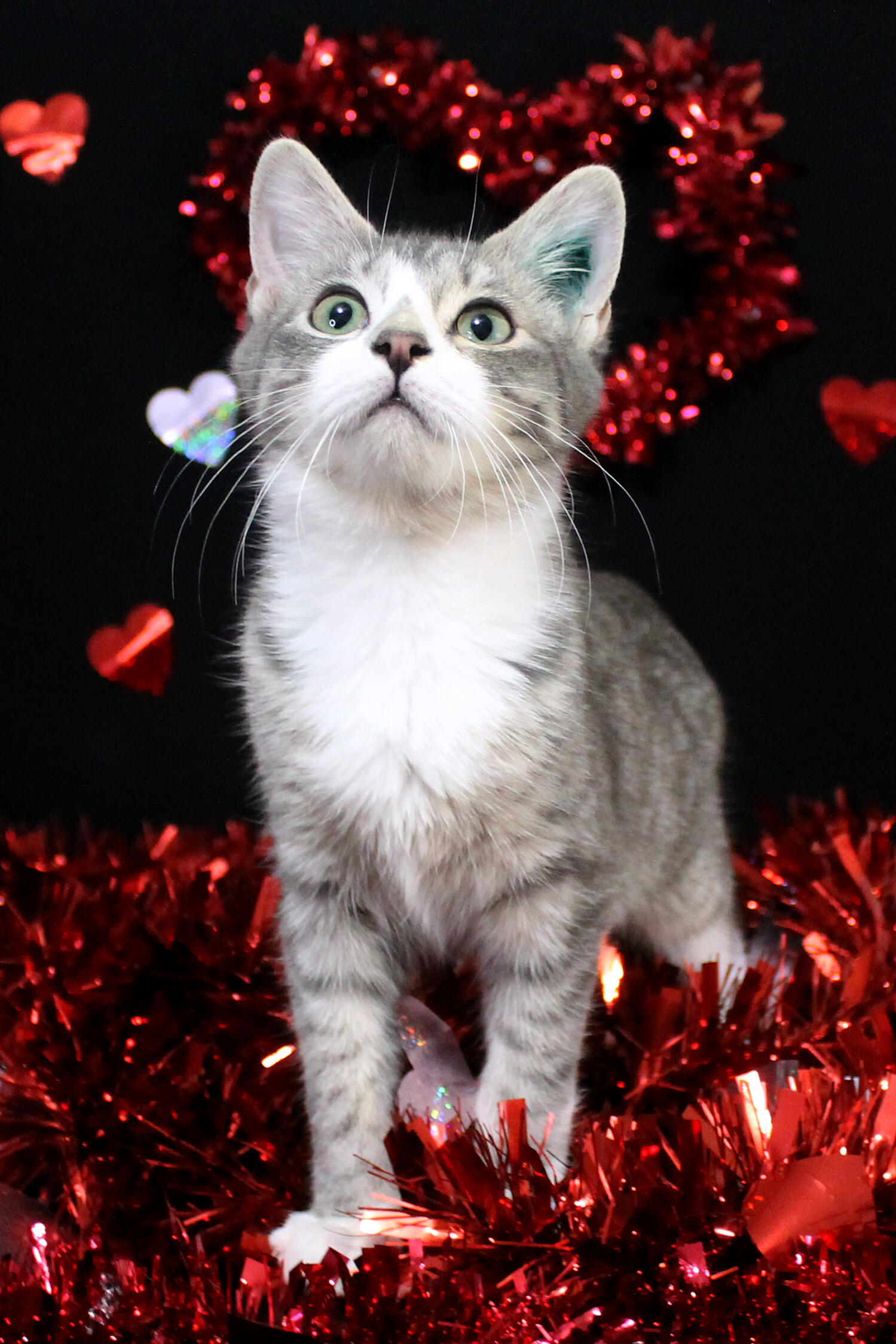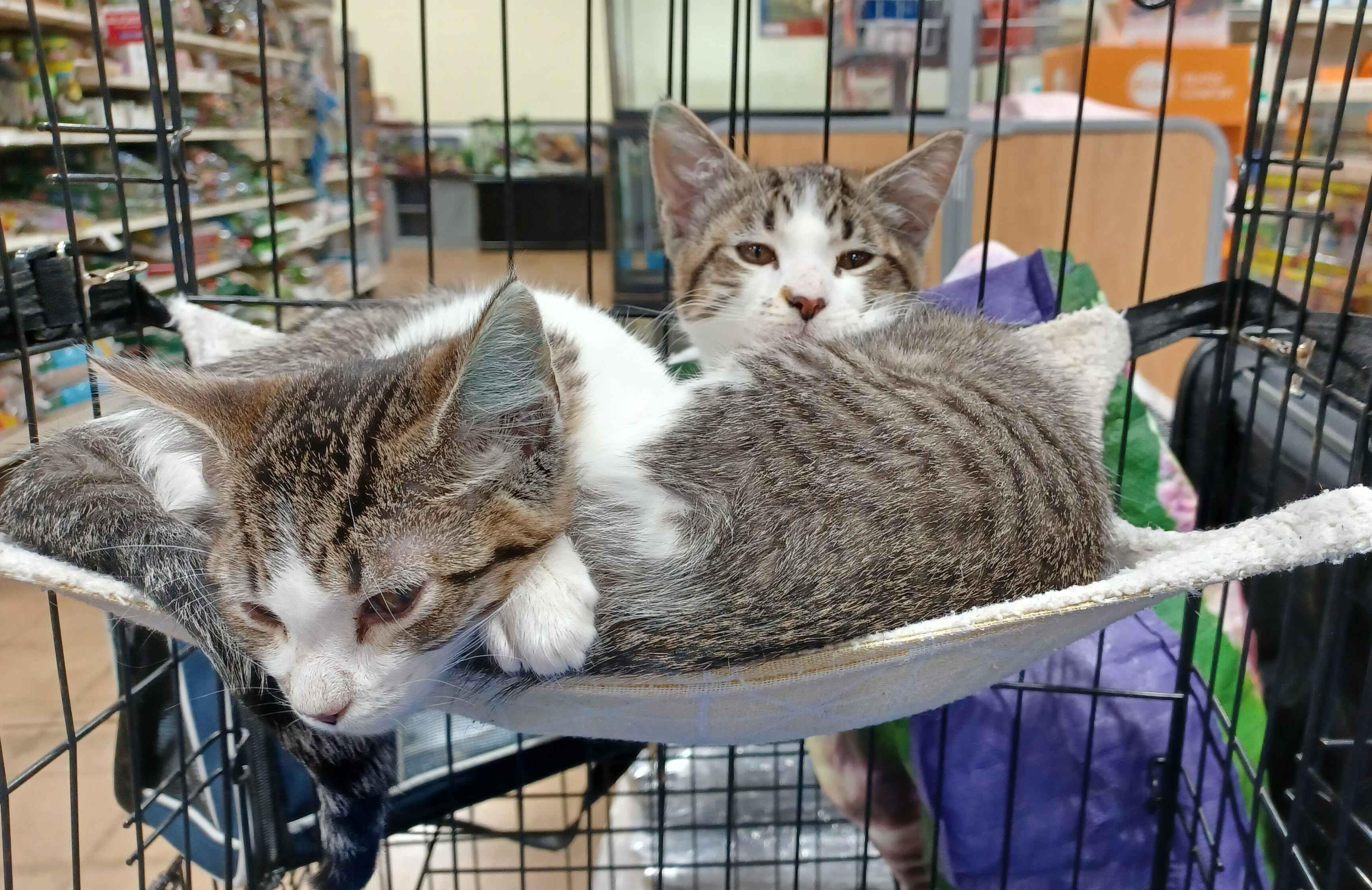 These kittens are in a foster home, so their only photos were taken at an adoption event.Ramen and Dumpling are gentle twin sisters who love to cuddle up together. It's pretty tricky to tell them apart! These tiny girls get along great with other cats, and are very used to children in their foster home.
