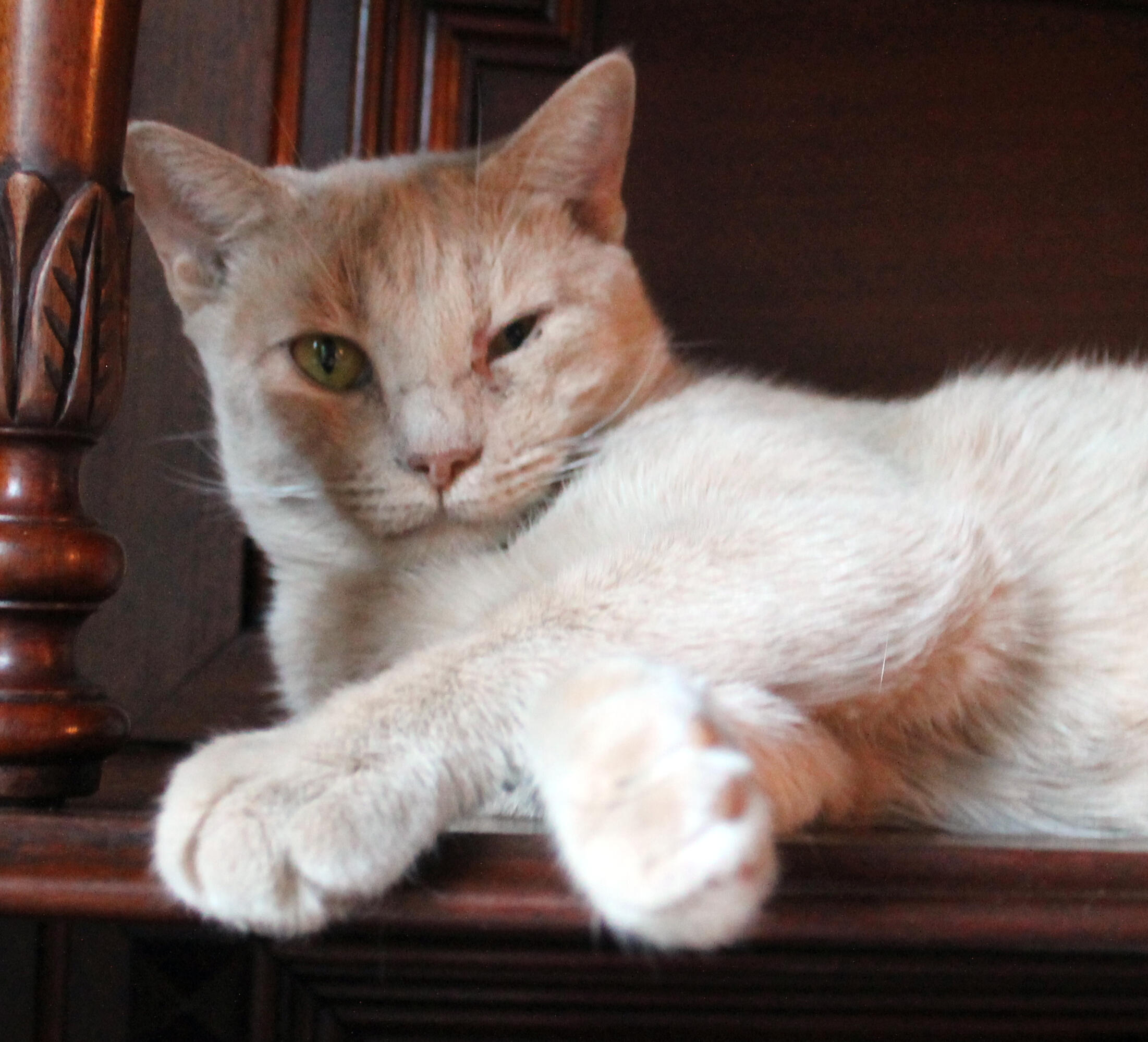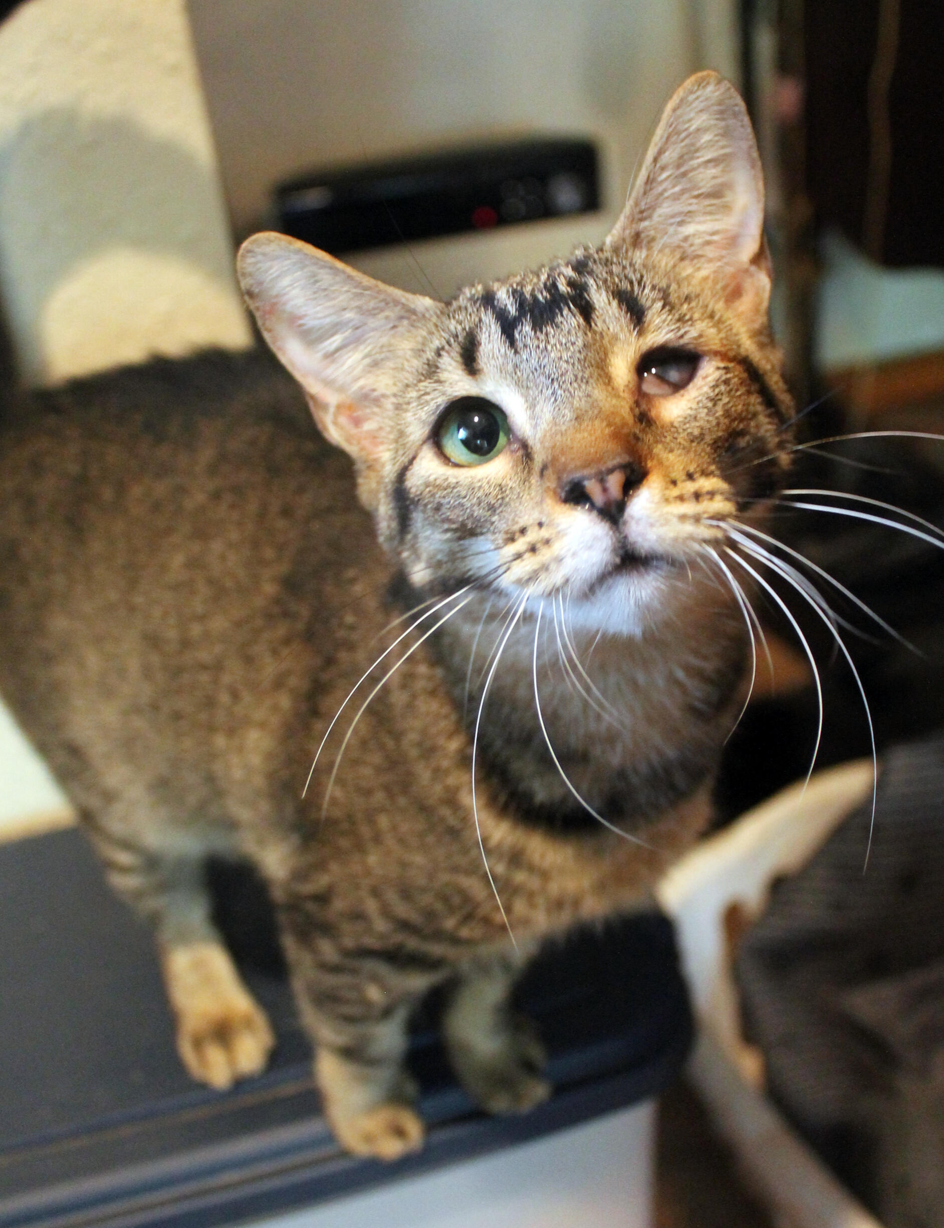 Sally was part of the 17 cats that came in to the rescue from an urgent situation. This sweet girl likes other cats and warm sun beams, but would prefer to be away from any rowdy dogs in her new home. She is a pretty independant cat, who enjoys the occassional cuddle with her low-energy, low volume humans. Her eye is about as healed as it will ever get.