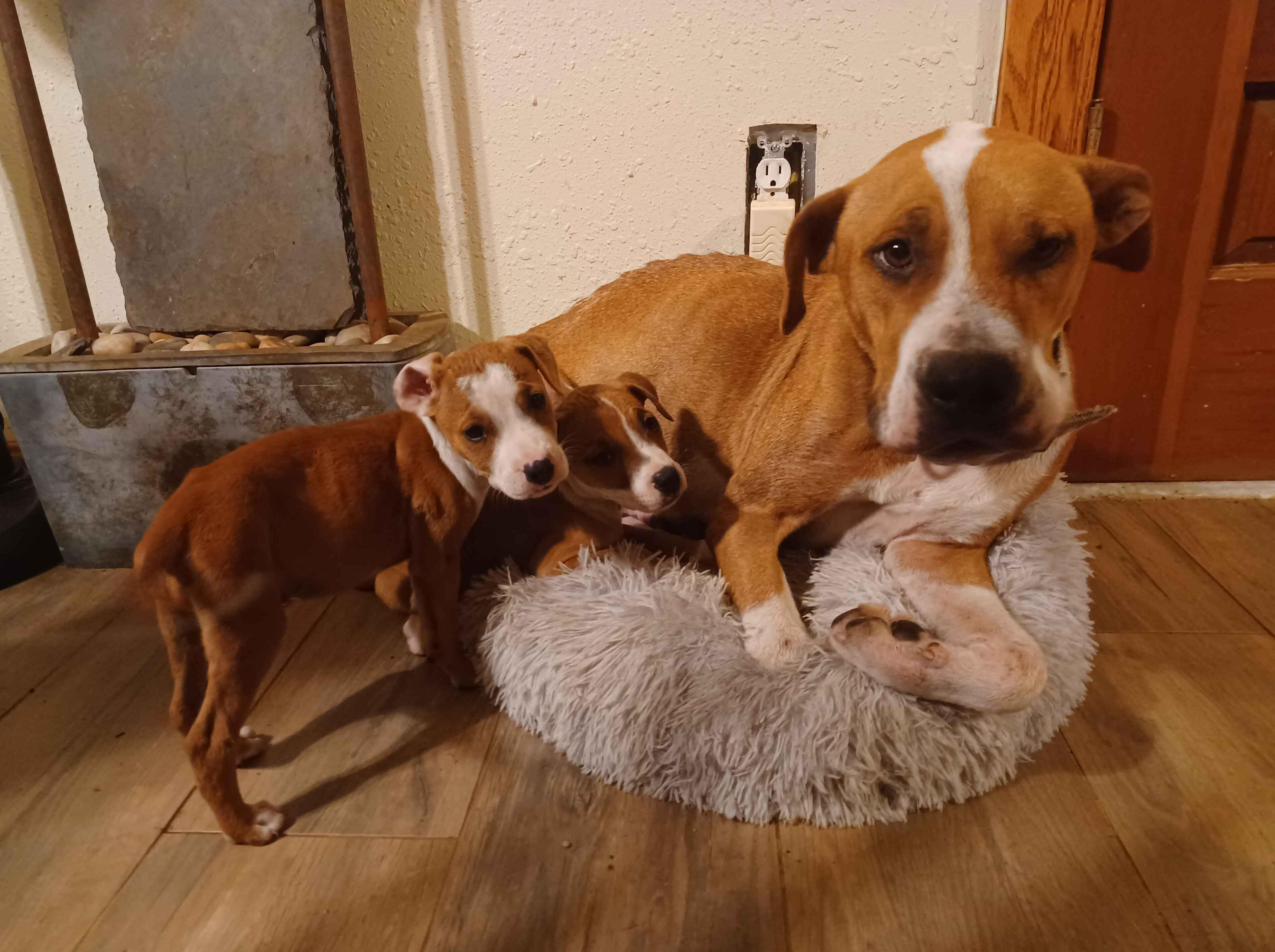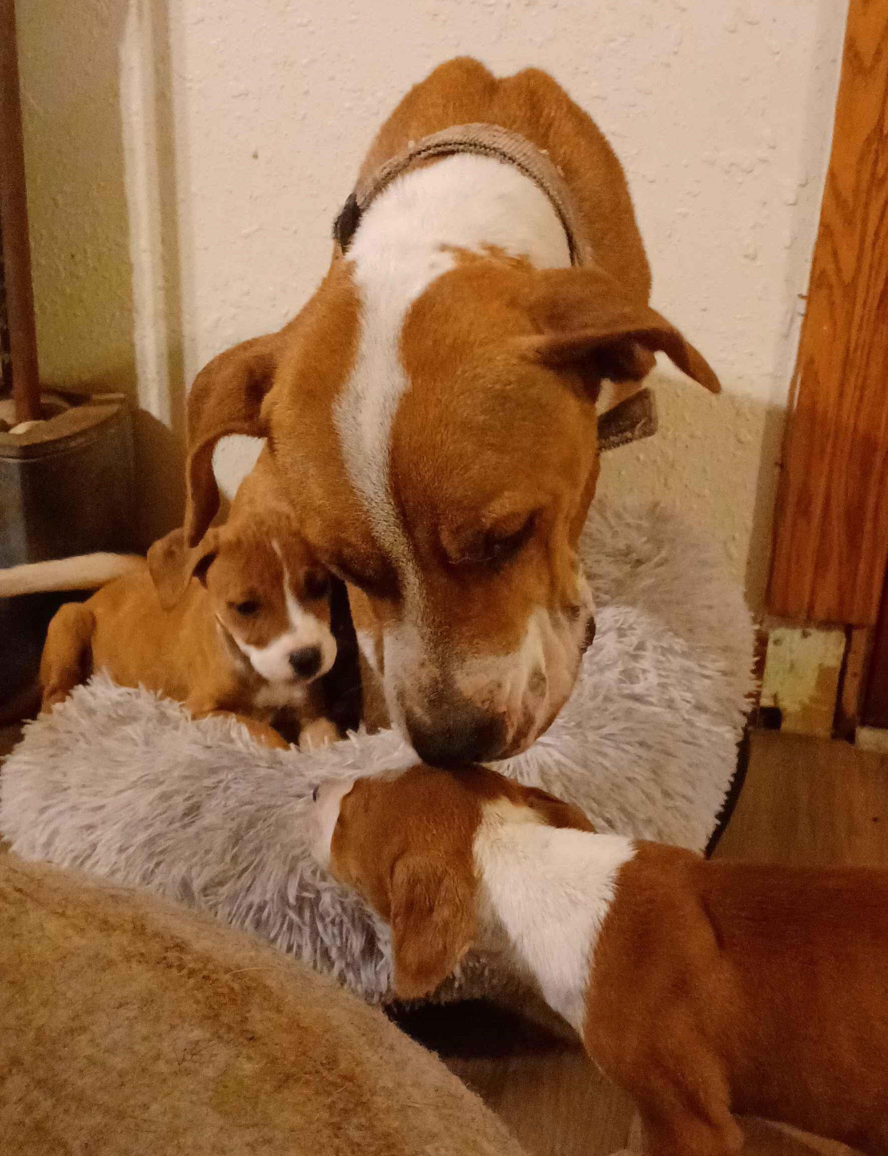 Heartbreaking doesn't even begin to describe this family upon intake. Skin and bones, and with Momma Faith HW+, plus coccidia, hookwarms and even having ehrlichia 😭 Life has not been kind to her. Jer beautiful babies have already found homes, and now that she has compelted heartworm treatment, and her chin has healed, it's her turn!Faith is a very gentle medium size girl. House trained, crate trained, great on a leash, and not at all a barker. Kid/cat/dog friendly too!