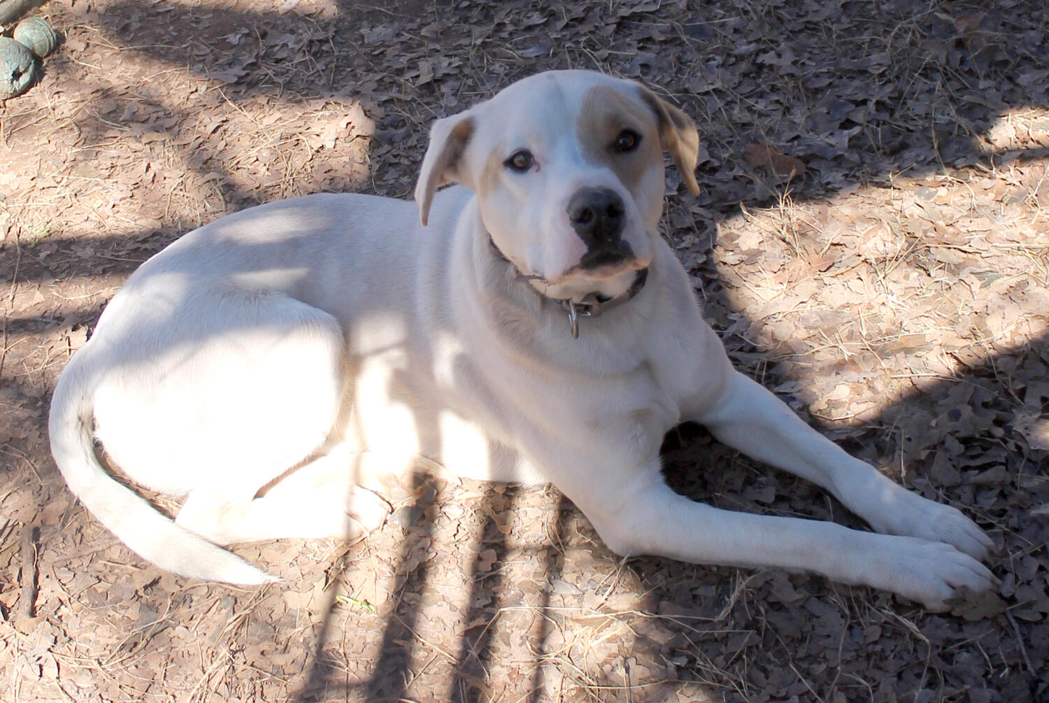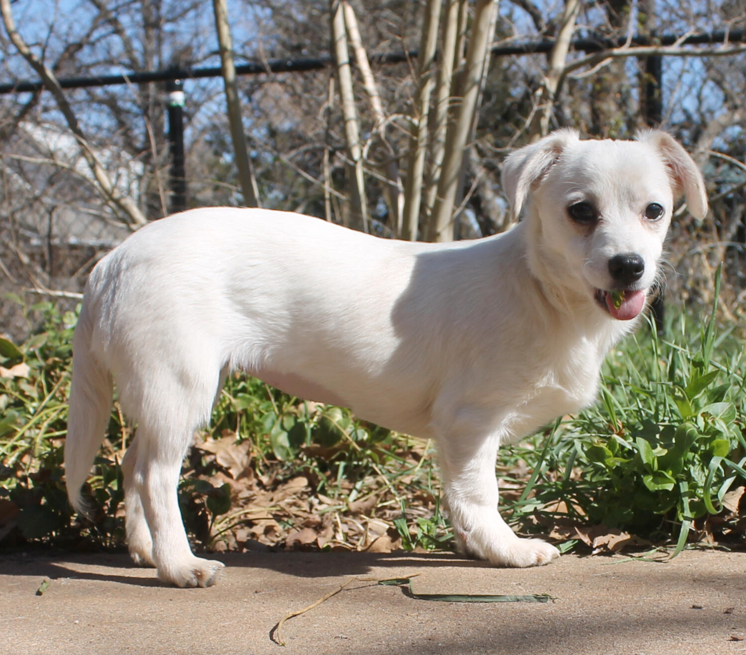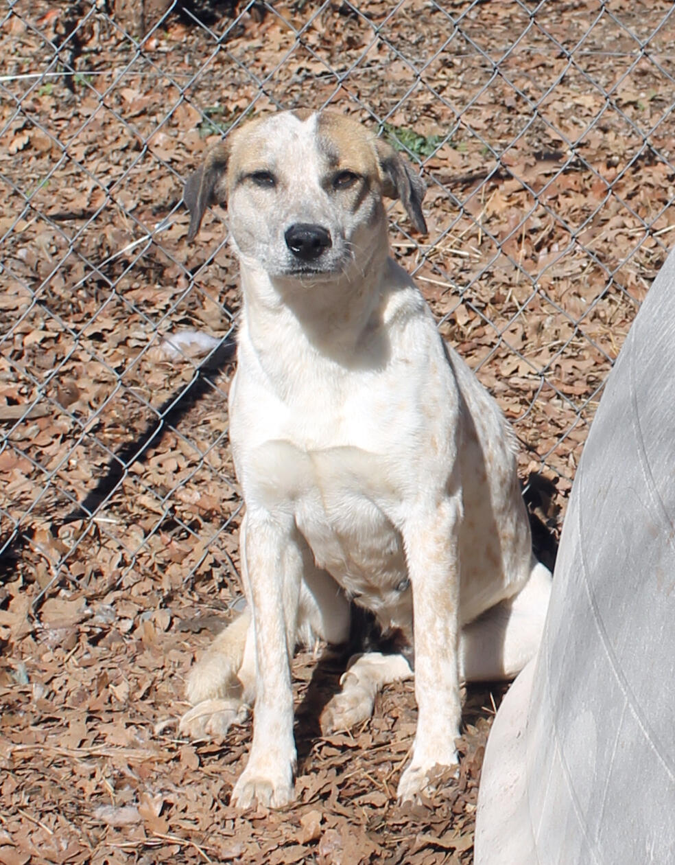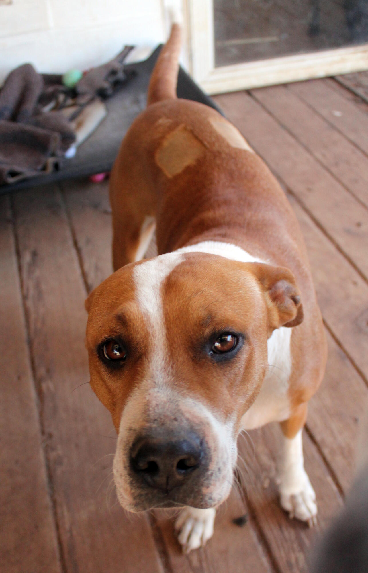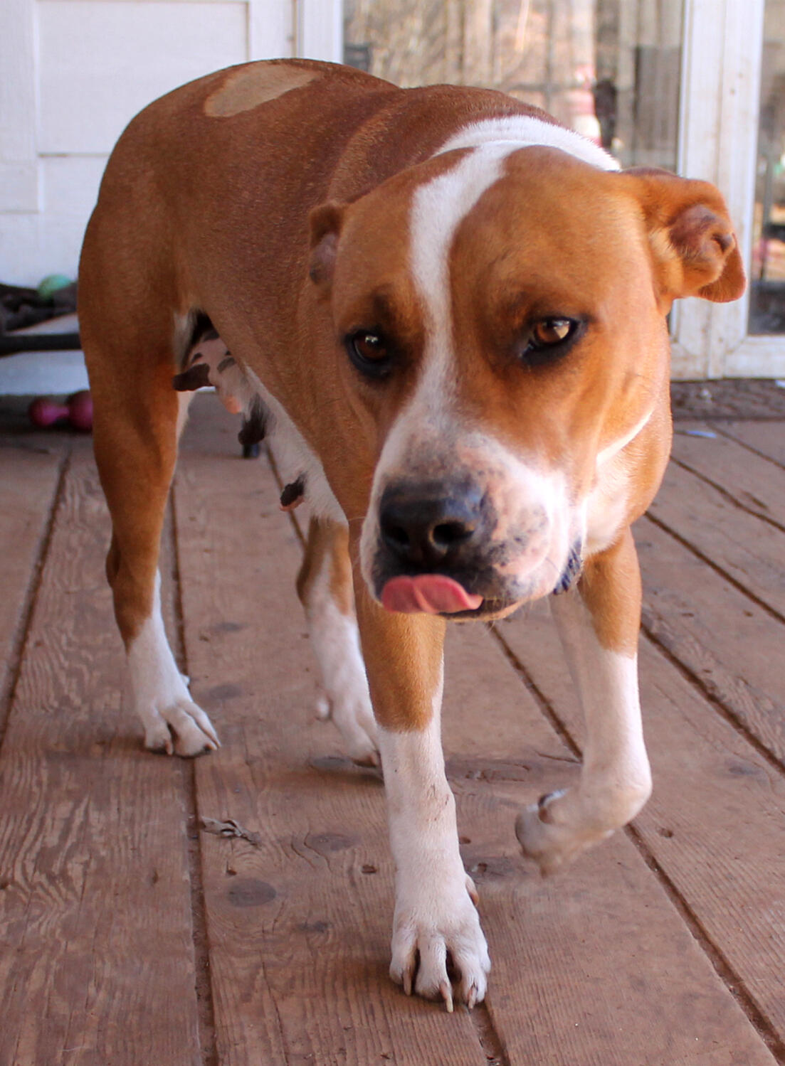 Pat came to us from OKC Animal Welfare's euth list. He is a very shy, but very sweet boy. He is good with other gentle dogs, and definitely a more low-energy pup.Pat is used to being outside a lot of the time, and is slowly getting used to having house access. He will need a patient adopter willing to give him lots of time to settle in to a new home.