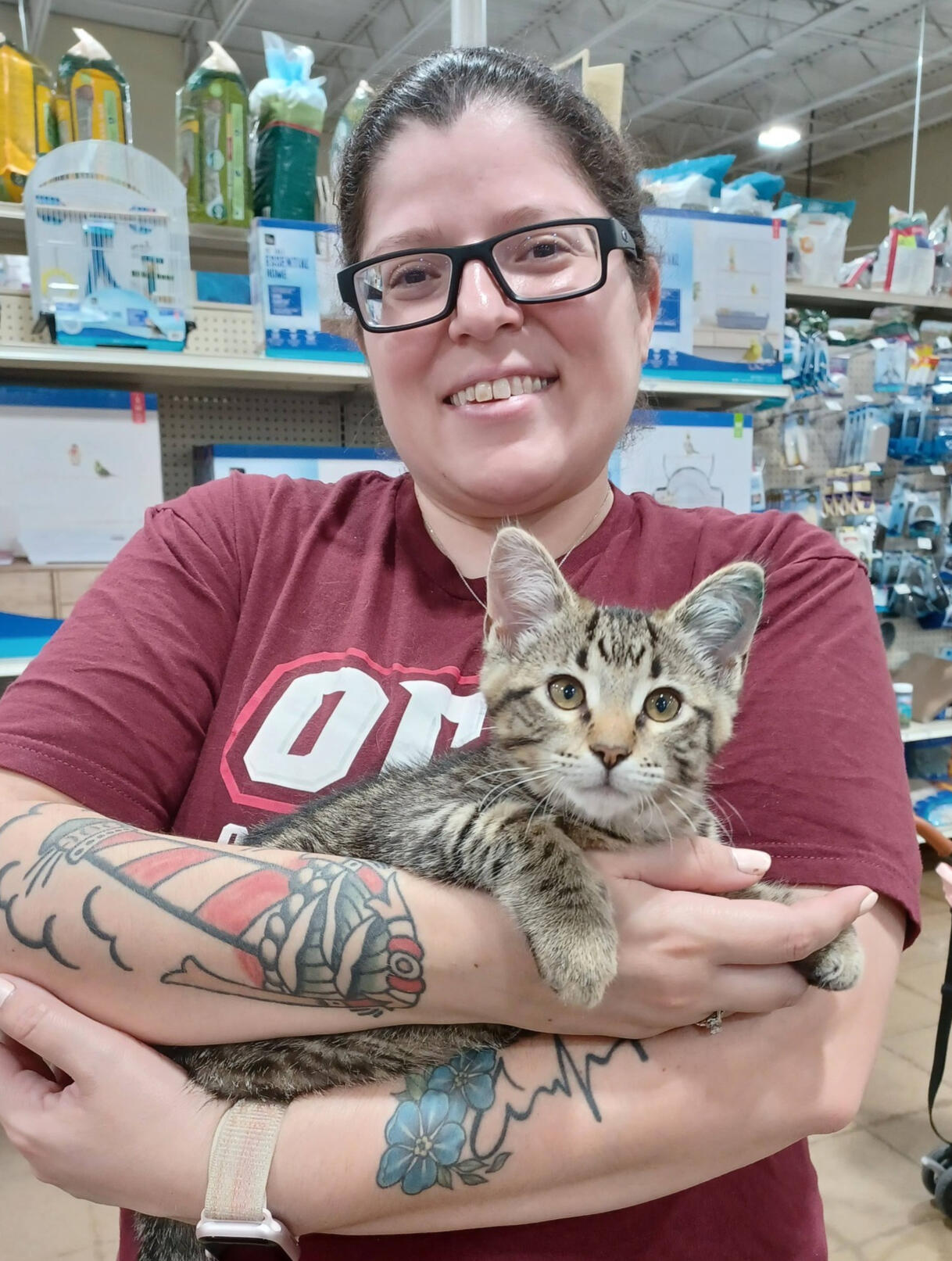 This itty bitty trouble maker is a big purr machine, and tiny monster. She's super playful one minute, then sugar sweet the next.Kira is a very needy girl. She would do best with a kitten friend or playful young adult cat at home if you want to know peace 😂 She doesn't know the meaning of personal space, and is VERY outgoing- harness training with this kid has been a breeze.