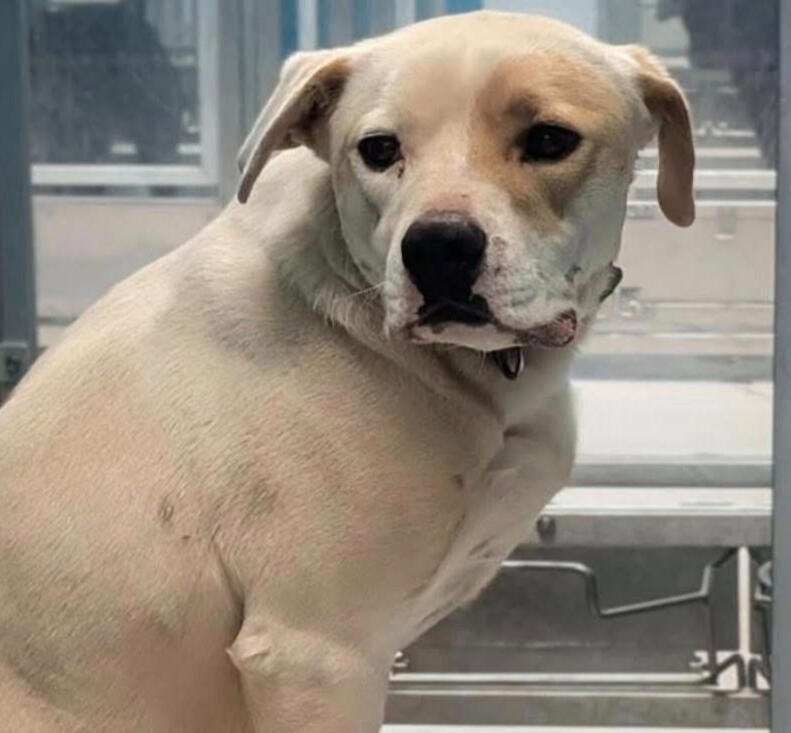 Good golly, Miss Molly! Talk about a mini-hippo! Molly was found abandoned while pregnant, at only 11 months old 💔 A previous adopter reached out to us for help, and how could we say no to this angel?Molly likes children and some other dogs, but cannot be in a home with cats. She is a big, kissy snuggly potato-shaped chonk, built low to the ground for speed and accuracy 🤣 Just kidding. At 35lbs, she is not even tall enough to get her head in the fridge 😂 Photos do not do this sweet girl justice, but unfortunately she is scared of the camera.